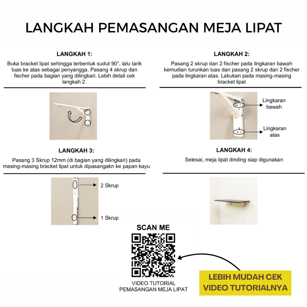 MEJA LIPAT DINDING TERMURAH UKURAN 100X40 100X30 80X40 80X30 60X40 60X30 MEJA SATU SET TANPA BOR MEJA KOMPUTER MEJA BELAJAR MEJA BACA