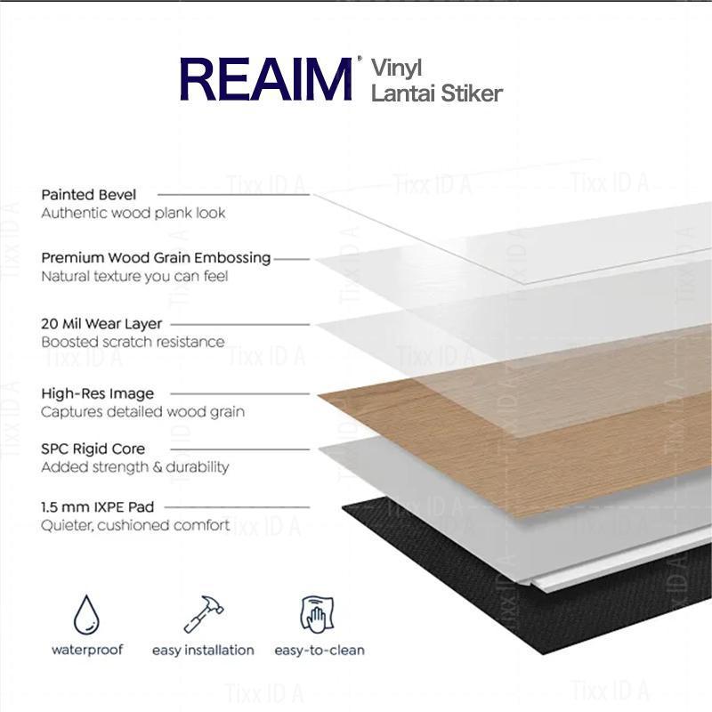 REAIM- Vinyl Lantai stiker 1 BOX 36 Pcs Upgrade baru Lantai kayu parquet Dengan Lem Sticker Glosy Vinyl Lantai Glosy PVC Vinyl Lanta