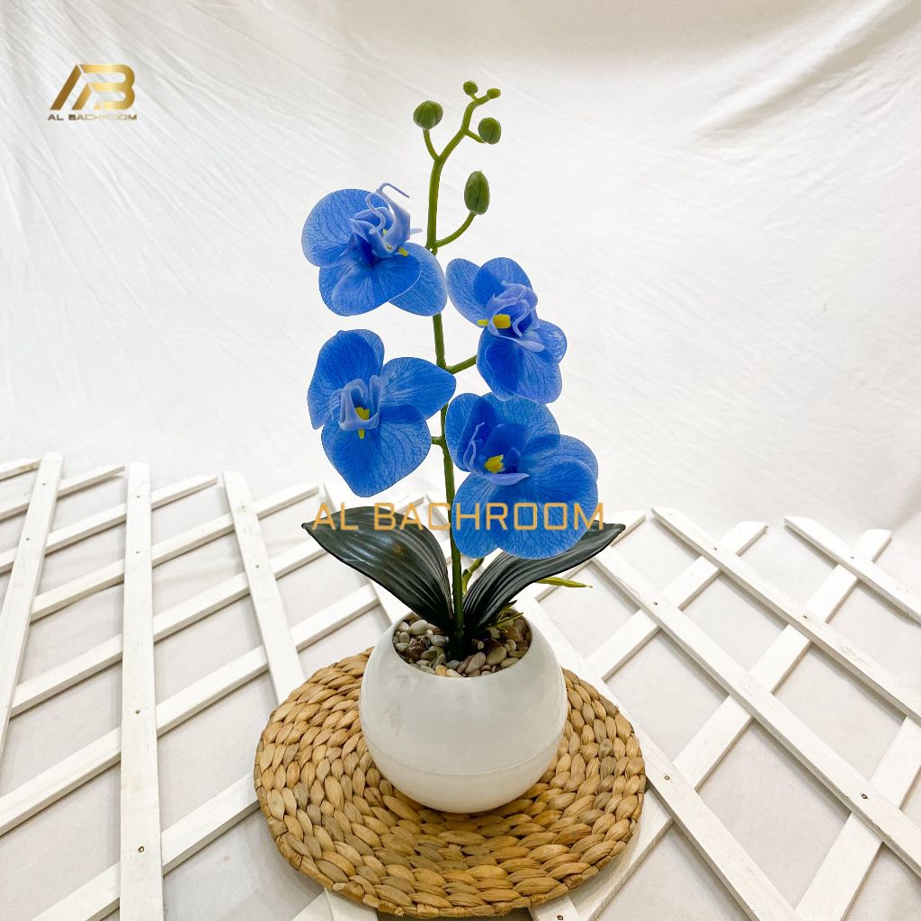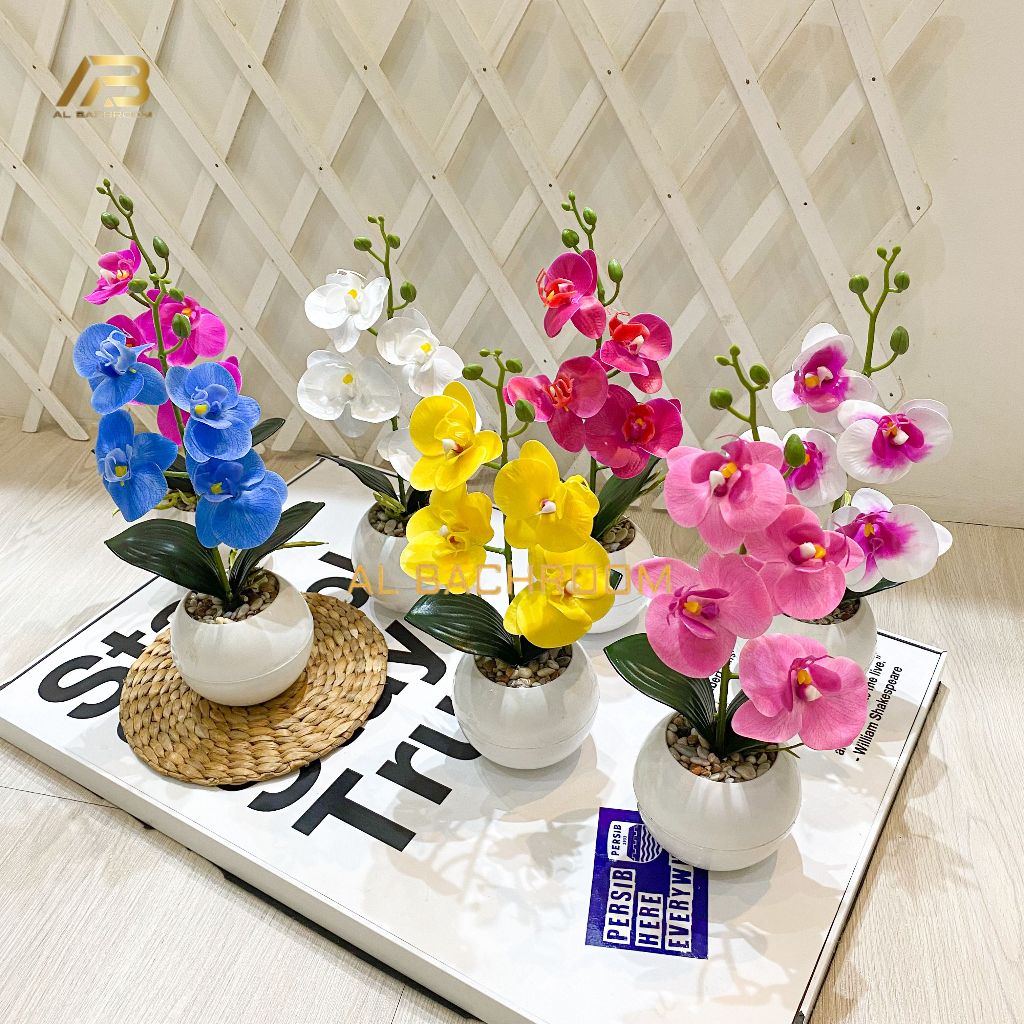 1 PAKET TANAMAN ARTIFICIAL ANGGREK LATEX K4 POT TOPIARI DEKORASI MEJA RUMAH KANTOR CAFFE ANNGGREK PLASTIK RB6164