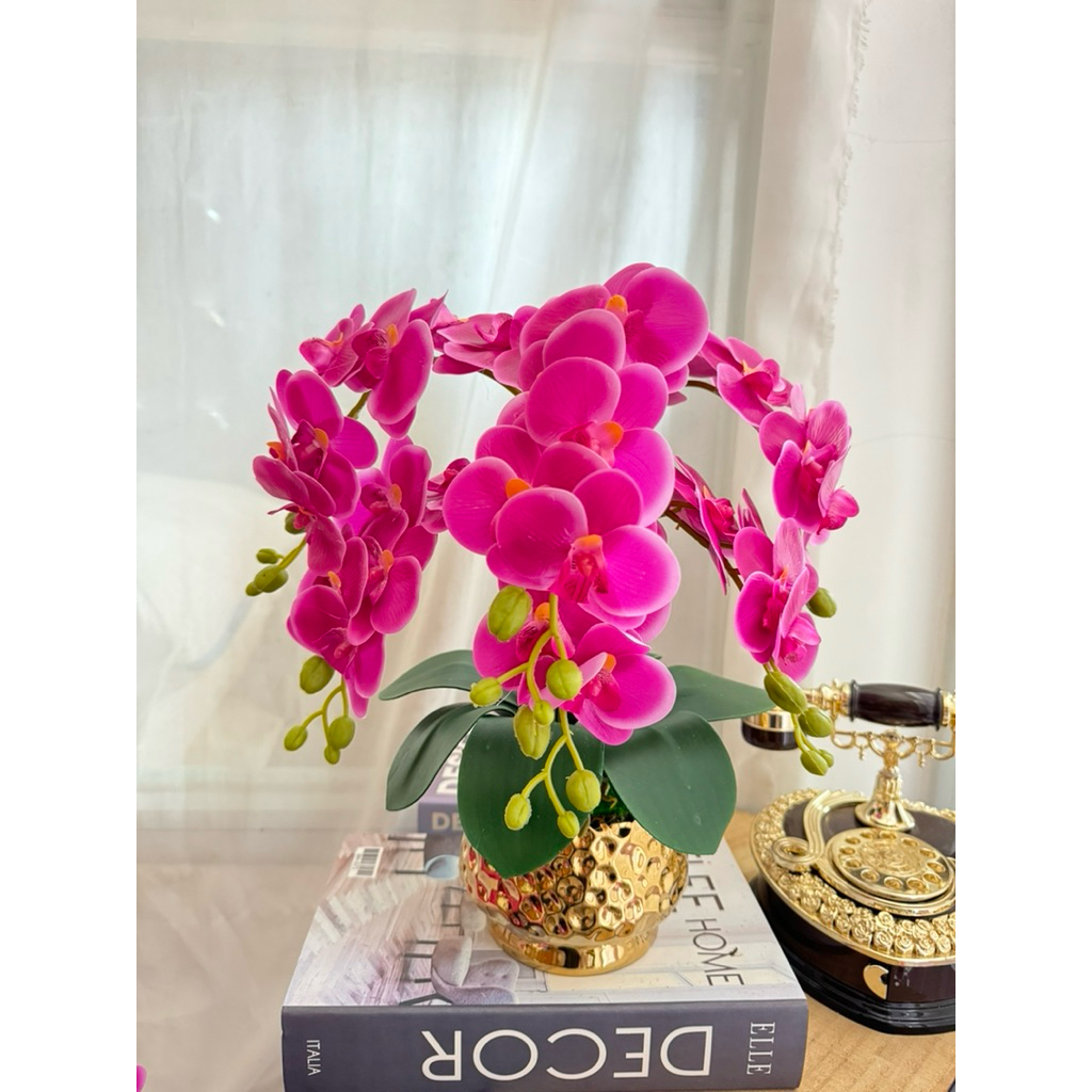 BUNGA ANGGREK CABANG 6 LATEX M VAS KAKI KRAMIK CEMARA POLKADOT