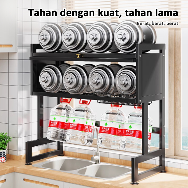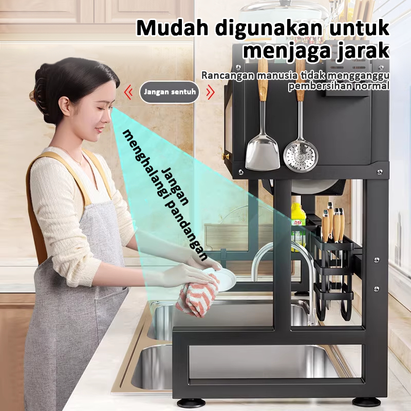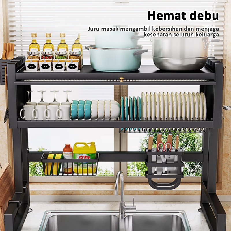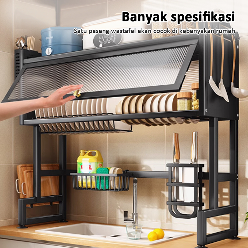 SUN Rak Piring Wastafel Dapur Stainless Steel Multi-fungsi Dengan Penutup
