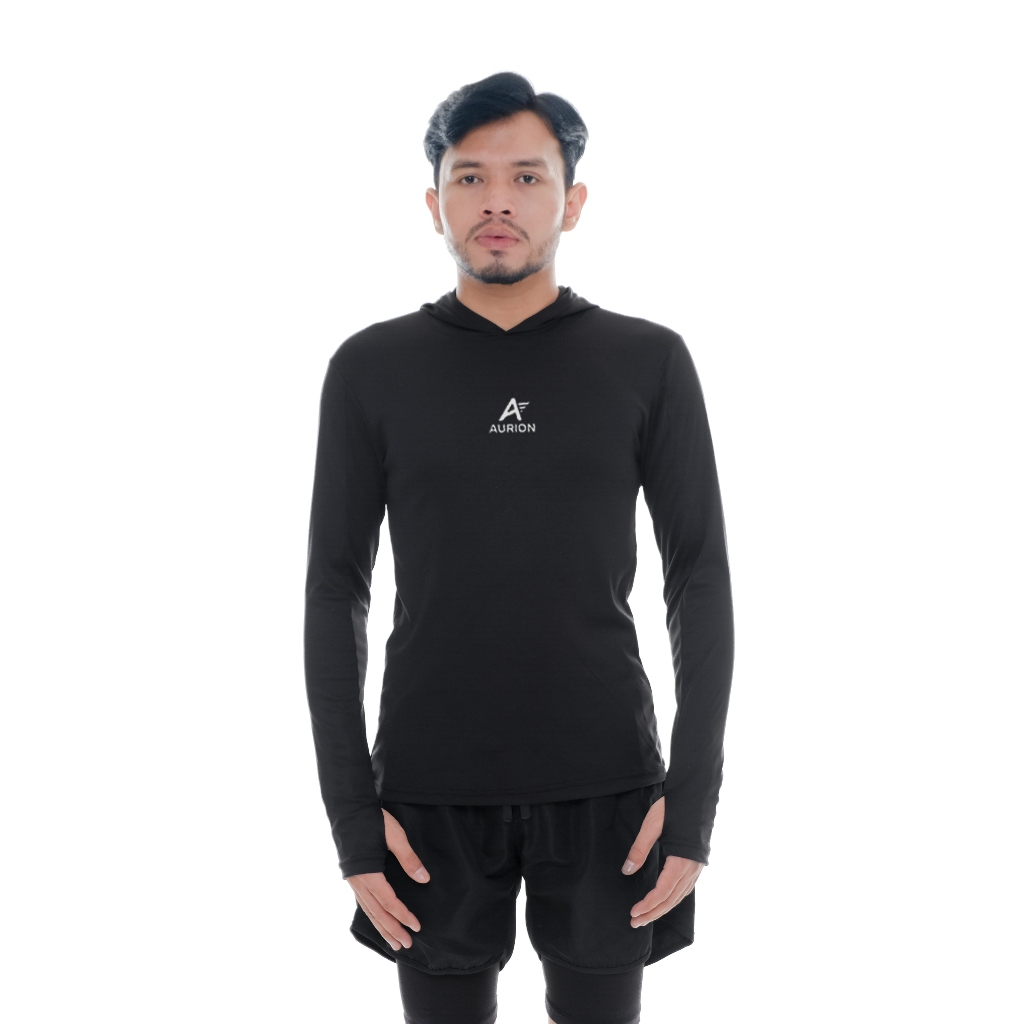 AURION Baselayer Hoodie Manset Kupluk Lengan Panjang Atasan Olahraga Pria Wanita