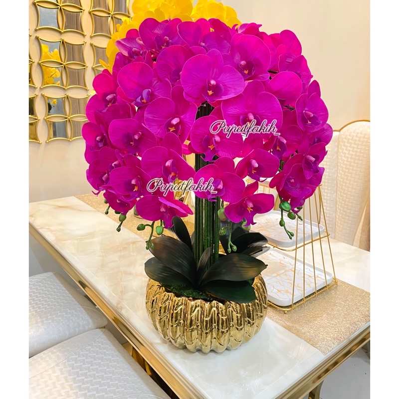 RANGKAIAN BUNGA ANGGREK PREMIUM JUMBO Bunga Anggrek Latex dengan Vas Super Cantik Dan elegan