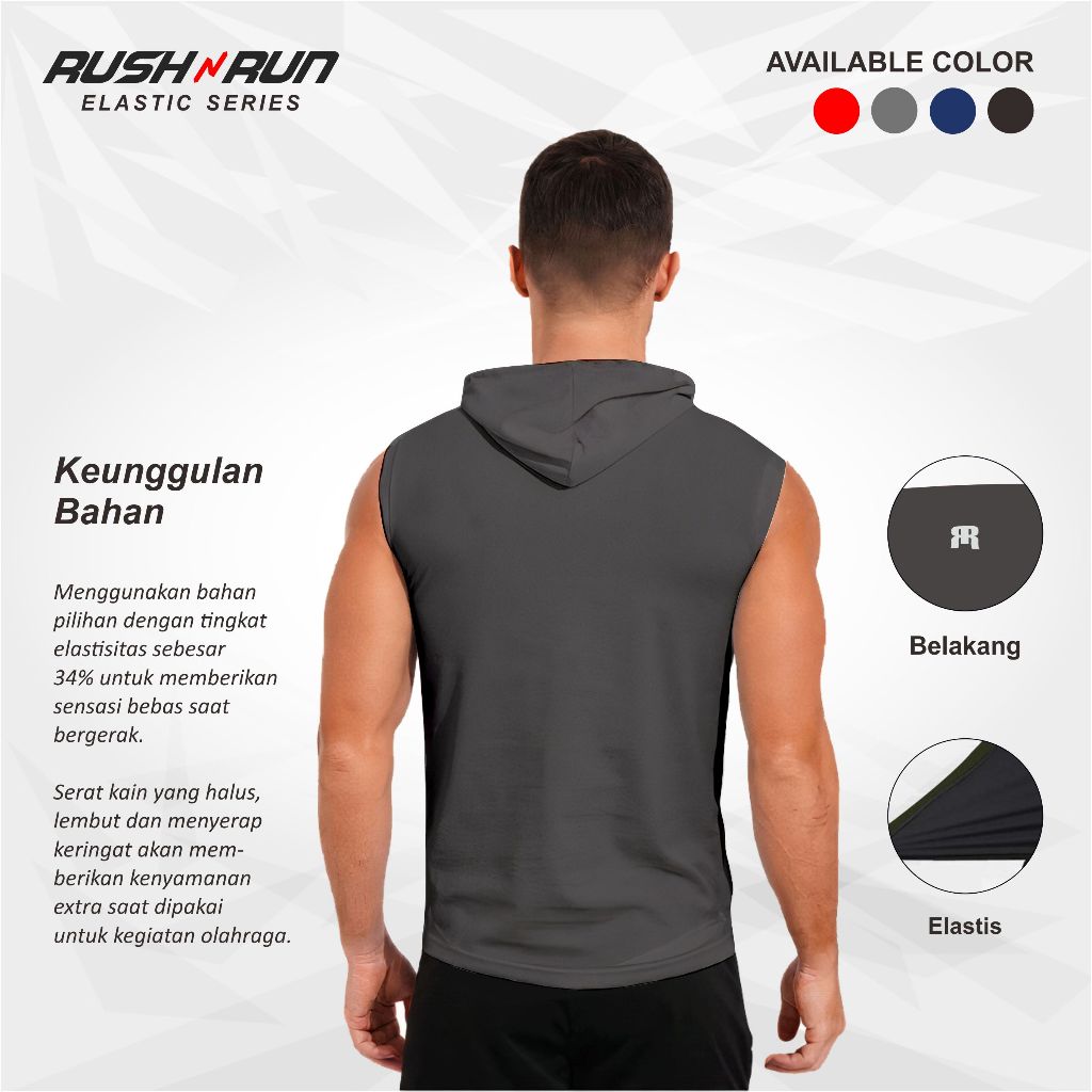 Sleeveless Rush n Run Singlet Hoodie Lekbong Kupluk Olahraga Gym Fitness Workout