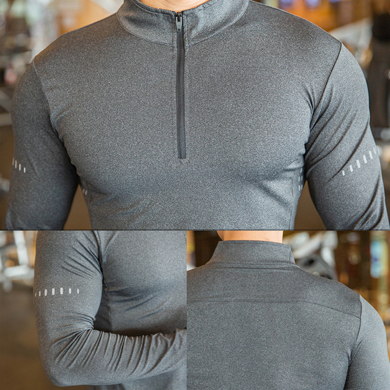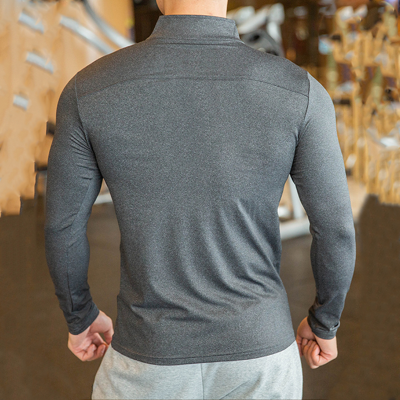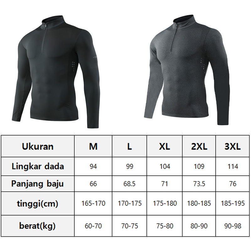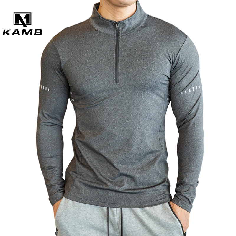 Produk Baru KAMB Kaos Lengan Panjang Olahraga Pria Half Zipper Super Elastis Breatheable Quick Dry Fitnes Gym Running