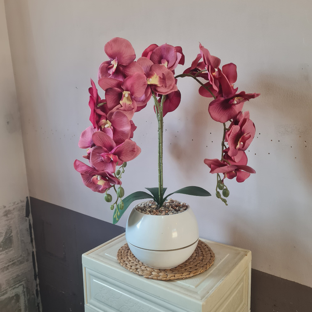 Bunga Anggrek Latex Artificial VAS BOLA cabang 3 Bunga Jumbo