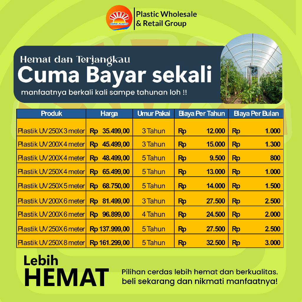 250 Mikron - 5 Tahun, 200 Mikron - 3 Tahun