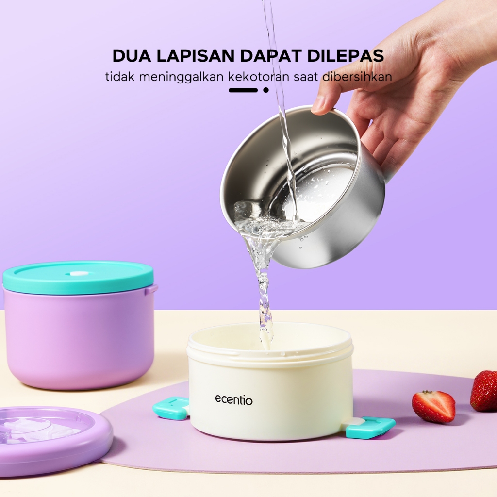 ecentio Kotak bekal stainless steel Double layer 730+550ml lunch box Tahan bocor Anti campur rasa Wadah makan Bento Besar