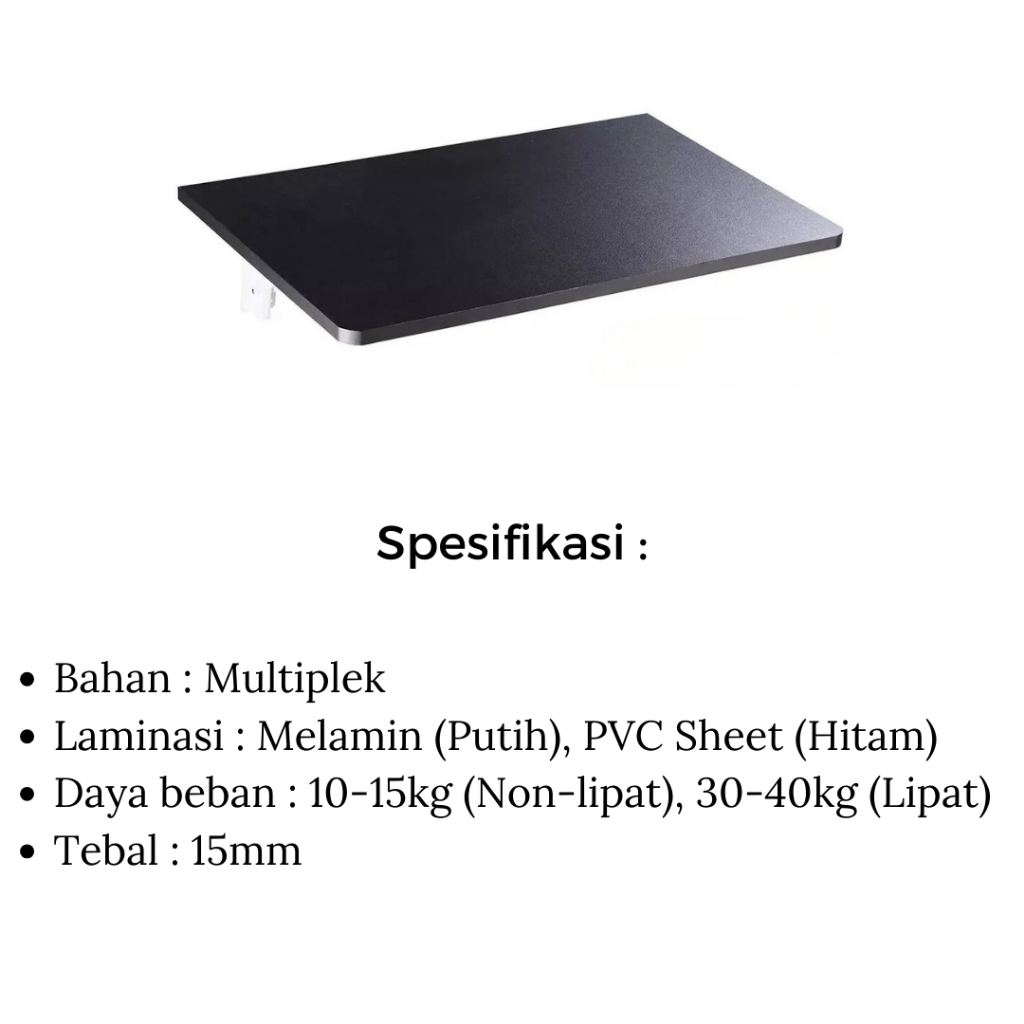 stock id Meja Lipat Dinding Minimalis Serbaguna Tanpa Bor Ukuran Jumbo 120x60cm 120x50cm 120x40cm 100x60cm 100x50cm 100x40cm 90x30cm 80x60cm 80x50cm 80x40cm 80x20cm 60x40cm