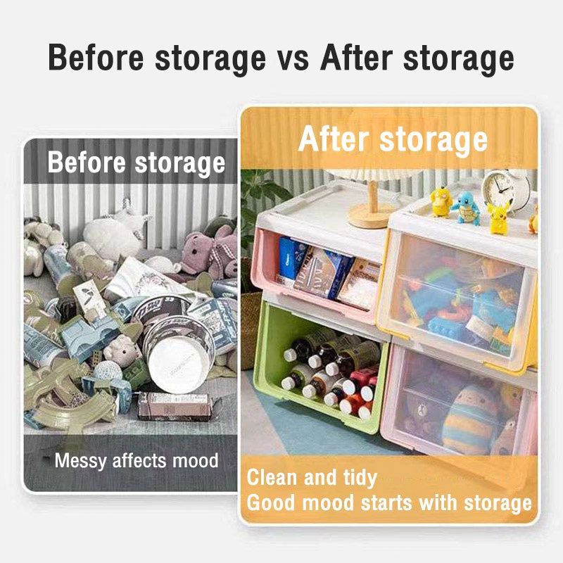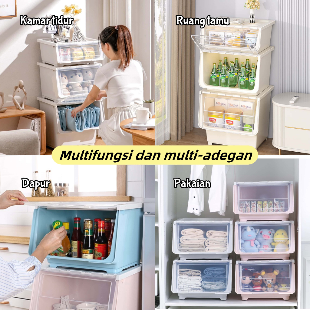Kotak Penyimpanan Plastik Transparan Besar Double Open/Buka Depan Untuk Mainan Anak, Buku, Pakaian - Multifungsi Anti Lembab