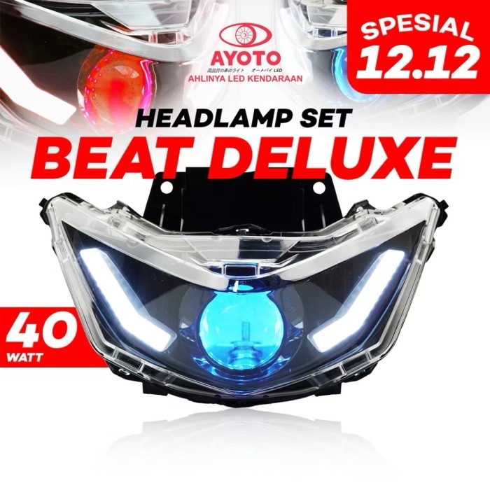 HEADLAMP REFLEKTOR KOMPLIT A55Y FULL SET BEAT DELUXE BILED PROJECTOR 2INCHI 40WATT AYOTO PLUG AND PLAY PREMIUM FREE SAKLAR 3STEP