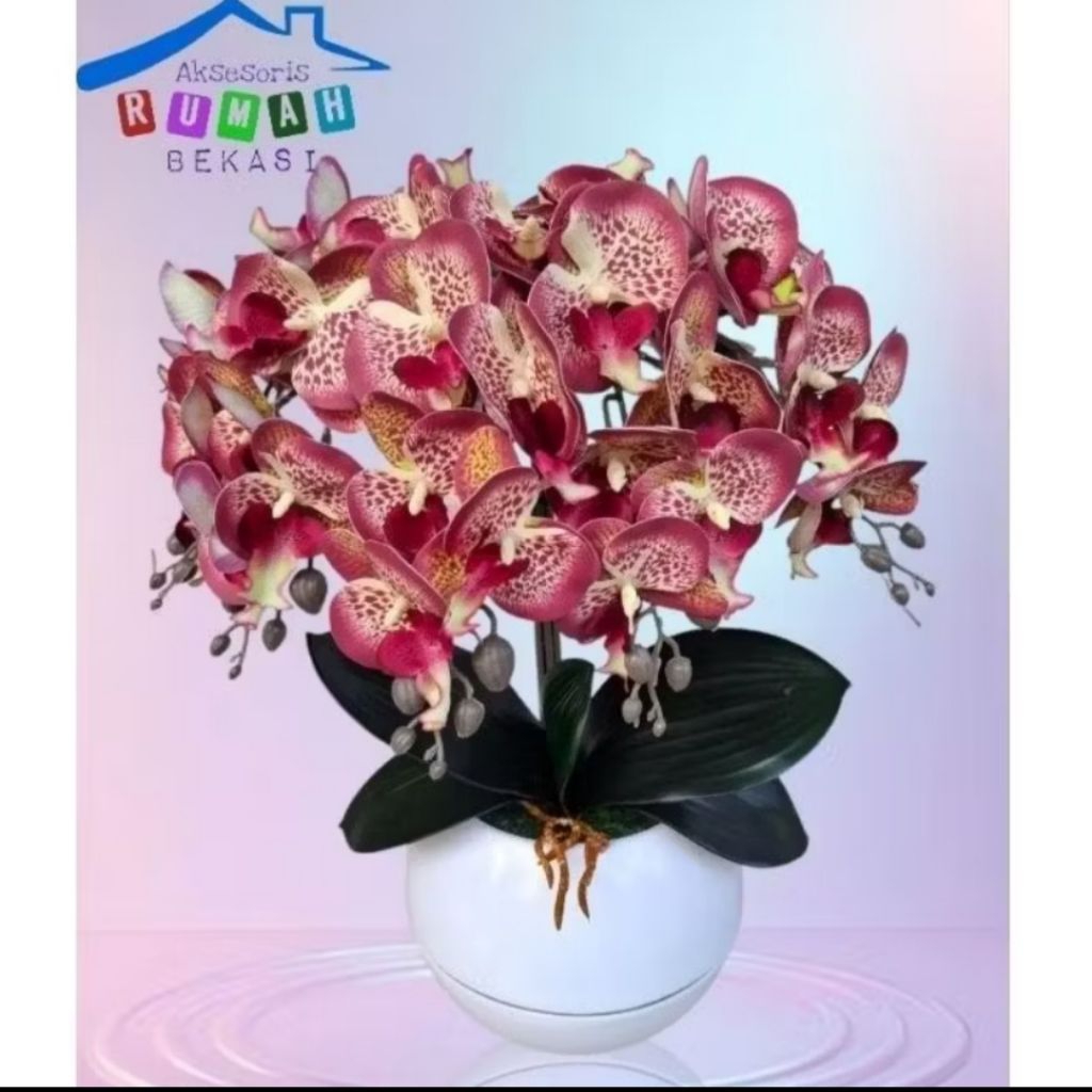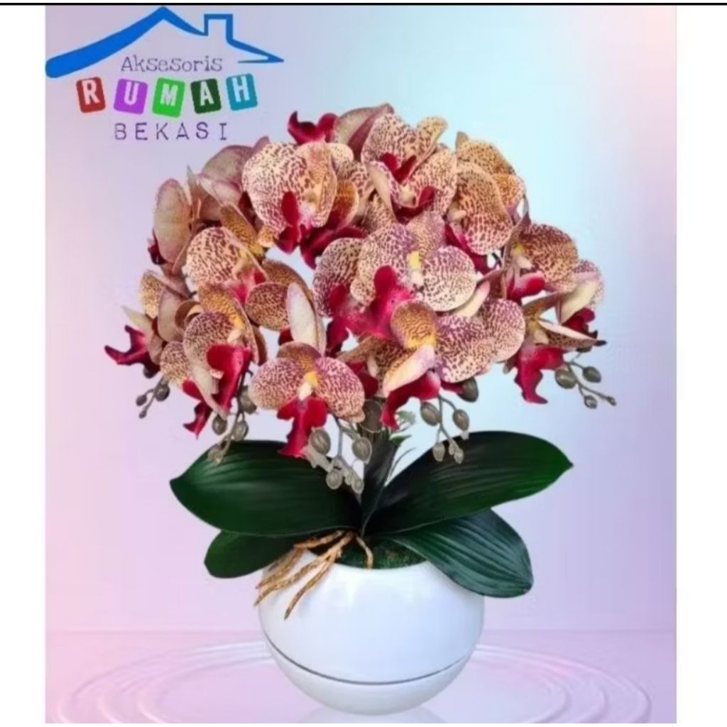 RANGKAIAN BUNGA ANGGREK LATEX ARTIFICIAL 5 TANGKAI DENGAN POT BOLA