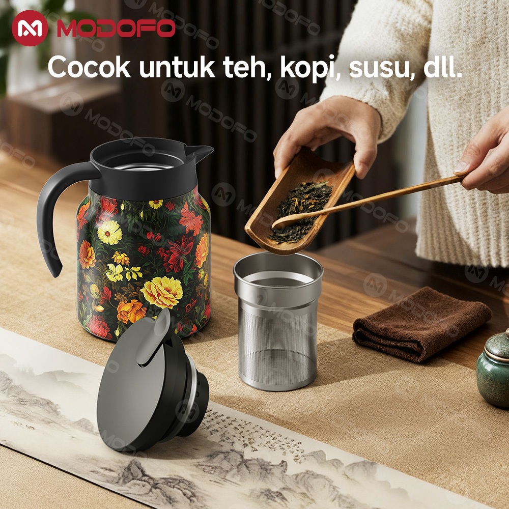 MODOFO Teko Teh Isolasi 1000ml Tahan Panas Dingin 24 Jam Baja 316 Stainless Aesthetic Motif Cetak Anti Bocor