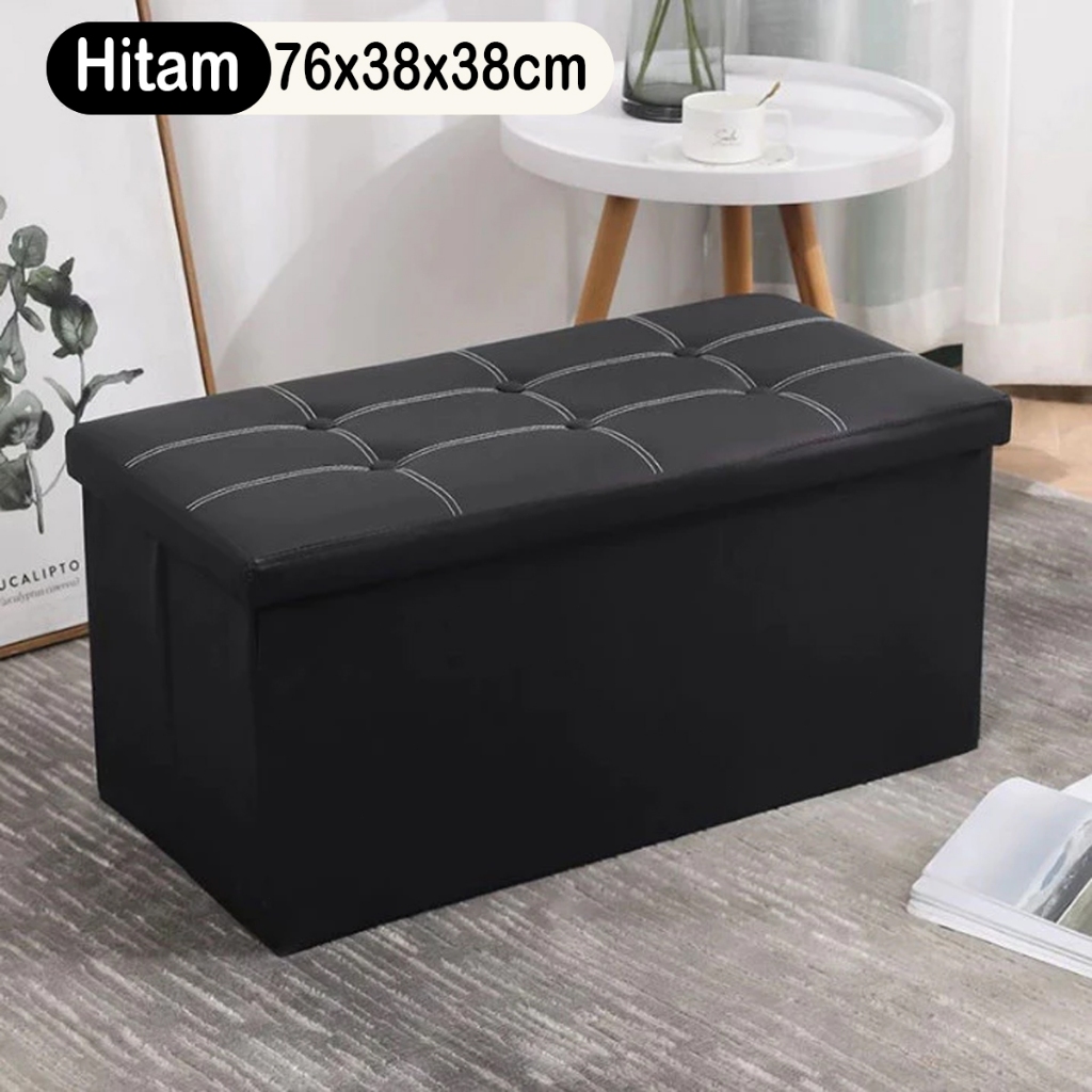 AINOSSI Kursi Penyimpanan Ottoman Lipat Sofa Dengan Kotak Penyimpanan Bangku Kulit Organizer Kotak Tempat Duduk Sandaran Kaki