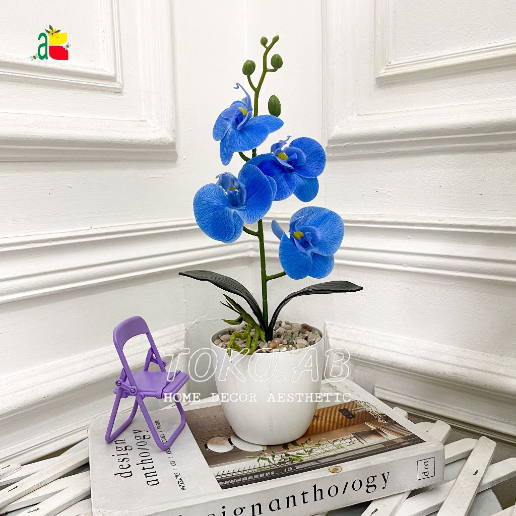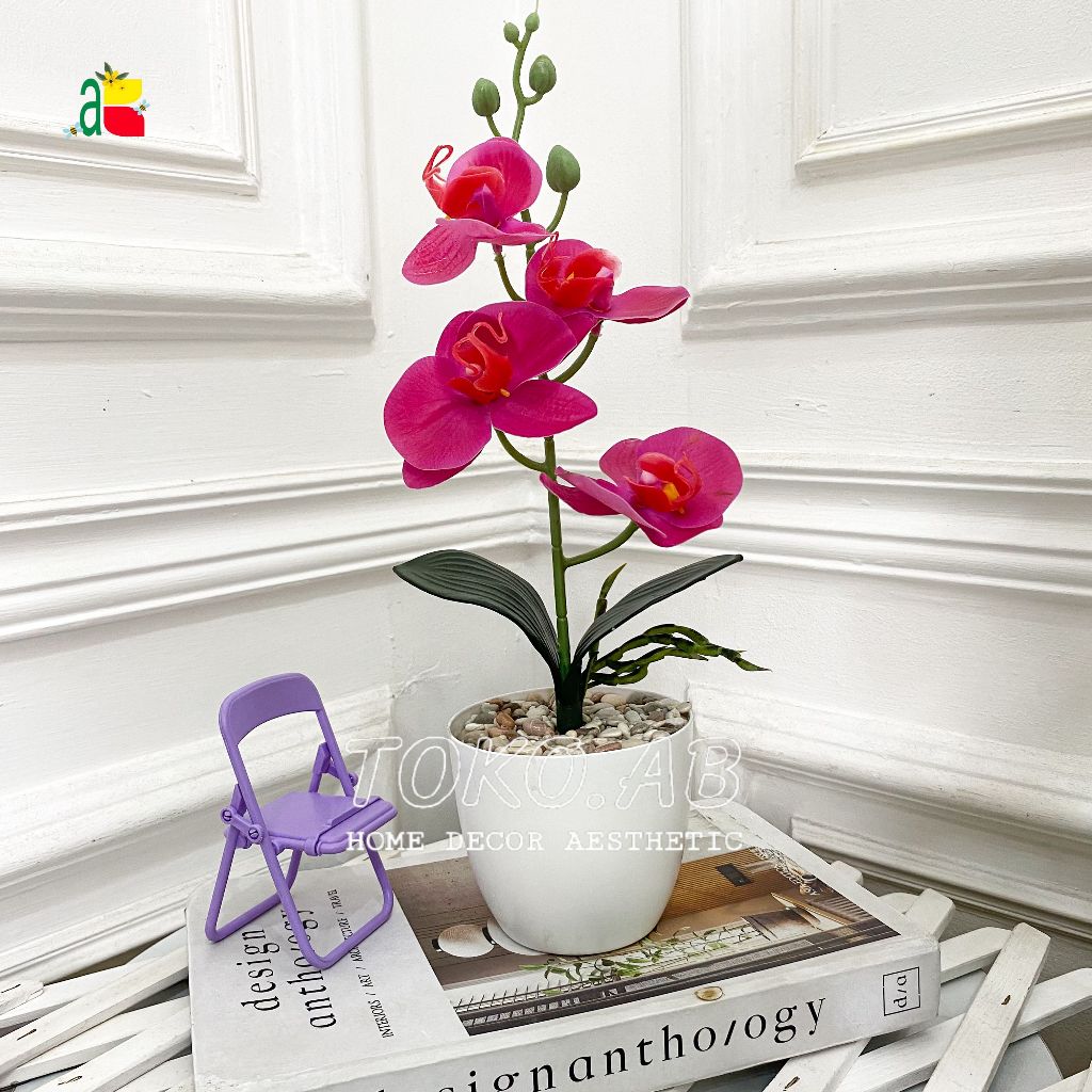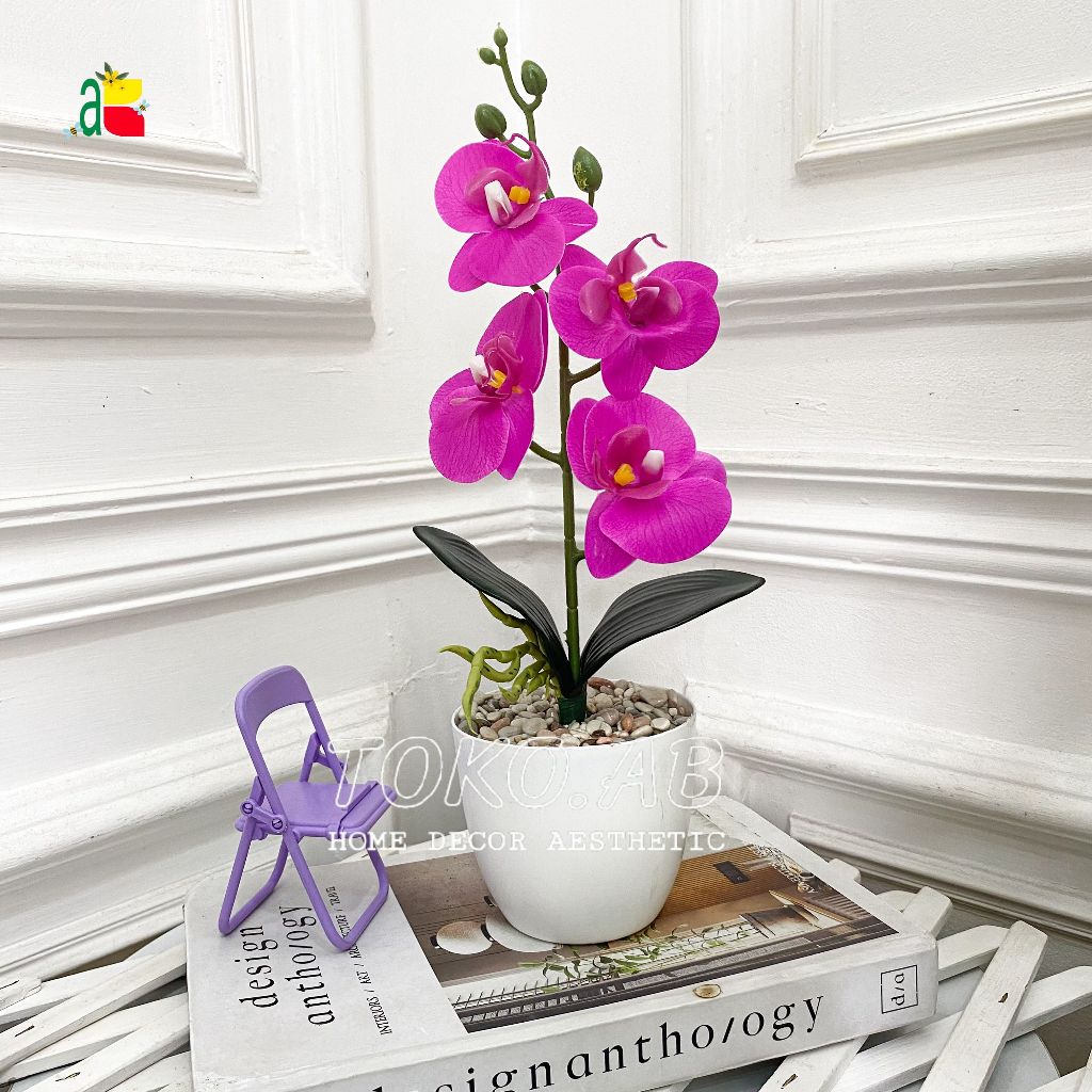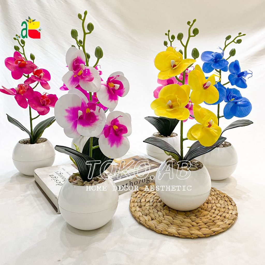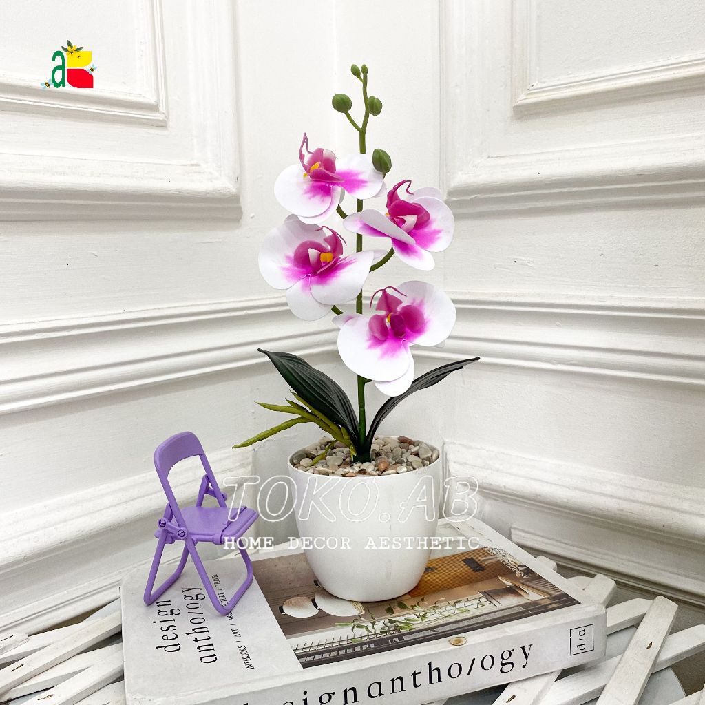 1 PAKET TANAMAN ARTIFICIAL ANGGREK LATEX K4 POT TOPIARI DEKORASI MEJA RUMAH KANTOR CAFFE ANNGGREK PLASTIK RB6164