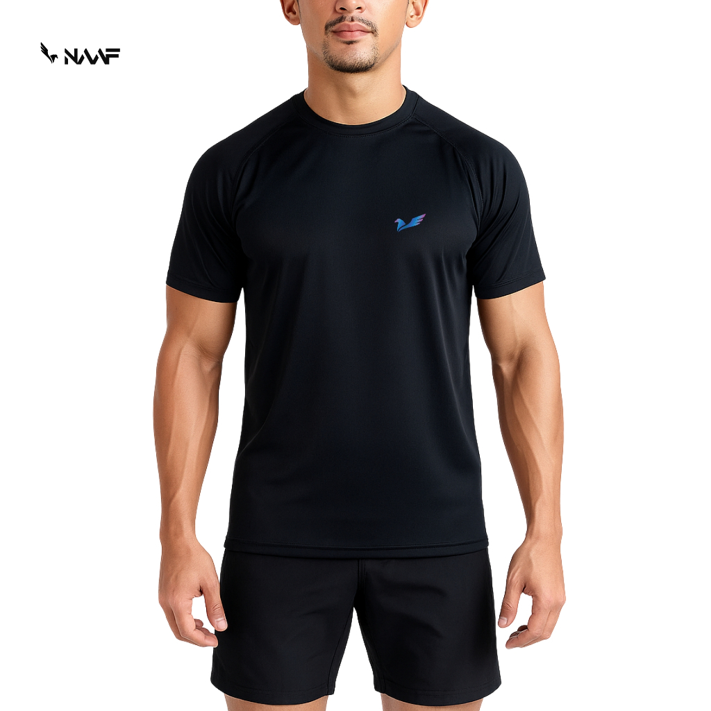 NAAF - Kaos Olahraga Pria Wanita Jogging Lari Lengan Pendek Quick Dry Fit Polos Hitam Putih Turkish