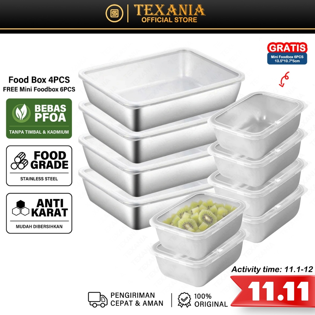 [BUY 4 FREE 6PCS DAPET 10PCS]TEXANIA Food Box 25cm isi 4pcs FREE 13cm 6pcs - Food Container kulkas- nampan stainless dengan tutup