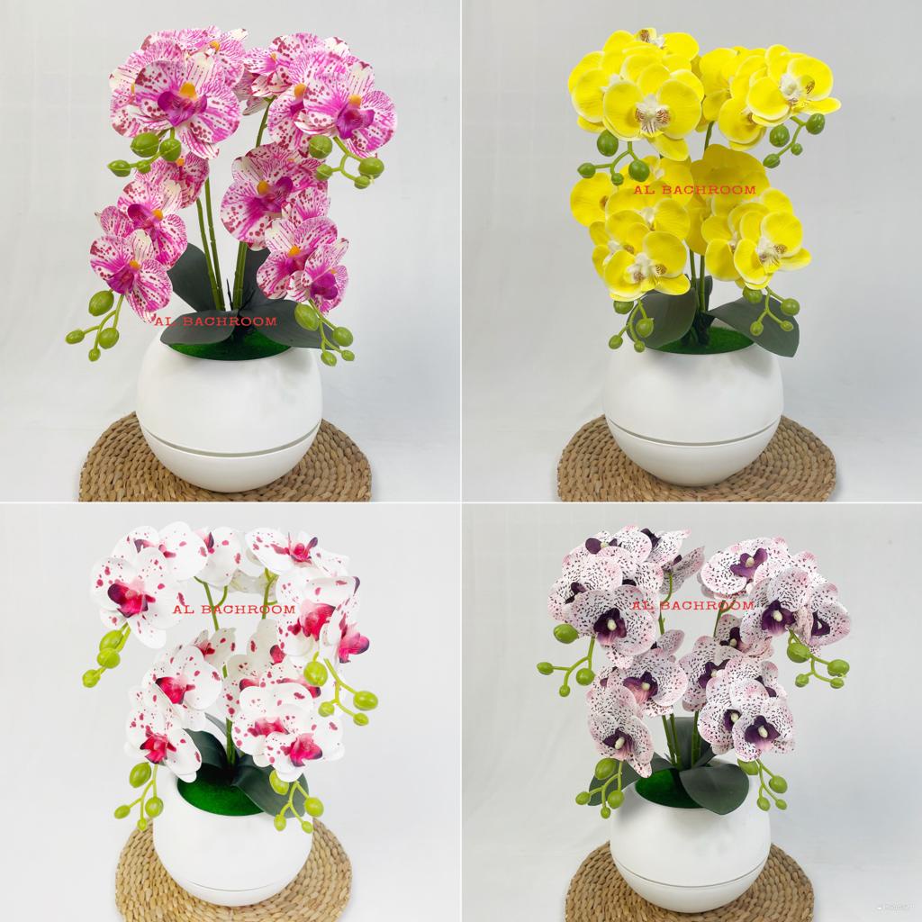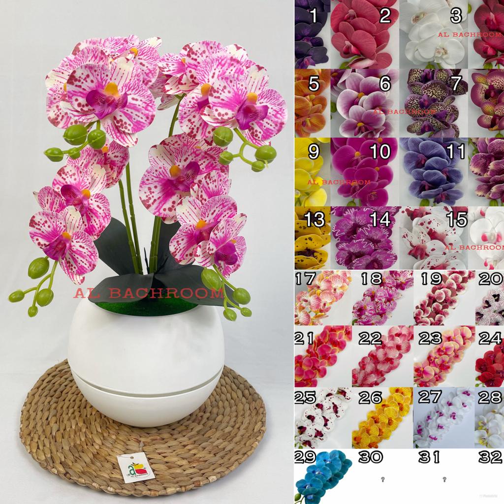 1 PAKET RANGKAIAN BUNGA ANGGREK LATEX 4 CABANG RB6057 BUNGA ANGGREK PLASTIK DEKORASI RUMAH BUNGA PLASTIK