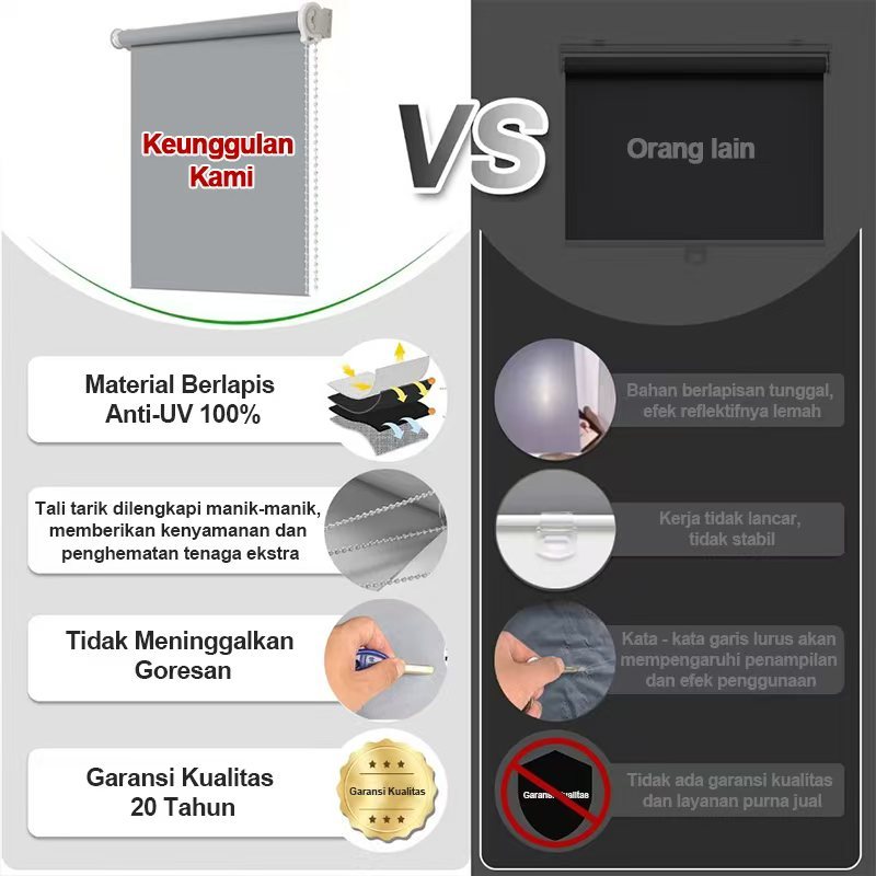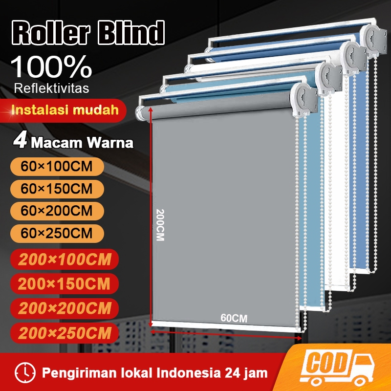 Roller Blind Blackout 100 PERSEN Dengan Rel Kepala - Tirai Gulung Premium Anti UV & Pengatur Cahaya, Material Tebal Tahan Air, Anti Noda & Gores