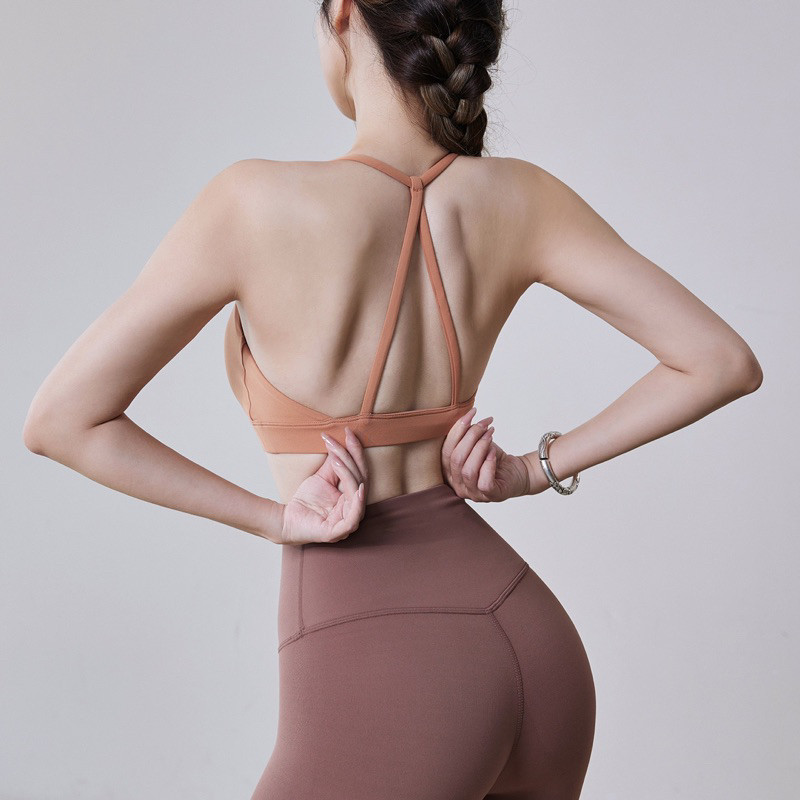 Joy Sports Bra Open Back Cross Pilates Yoga Gym Triangle Back BH Atasan Olahraga Wanita