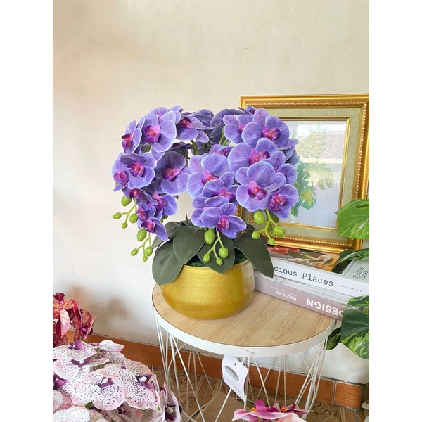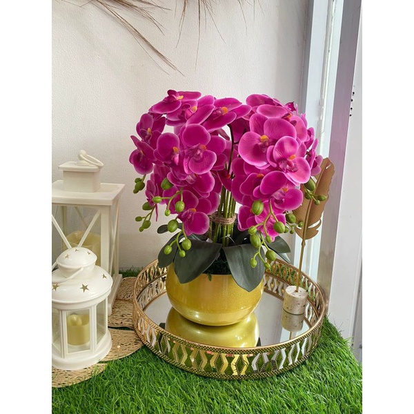 BUNGA ANGGREK VAS kuningan mengkilap KALENG CABANG 10 LATEX