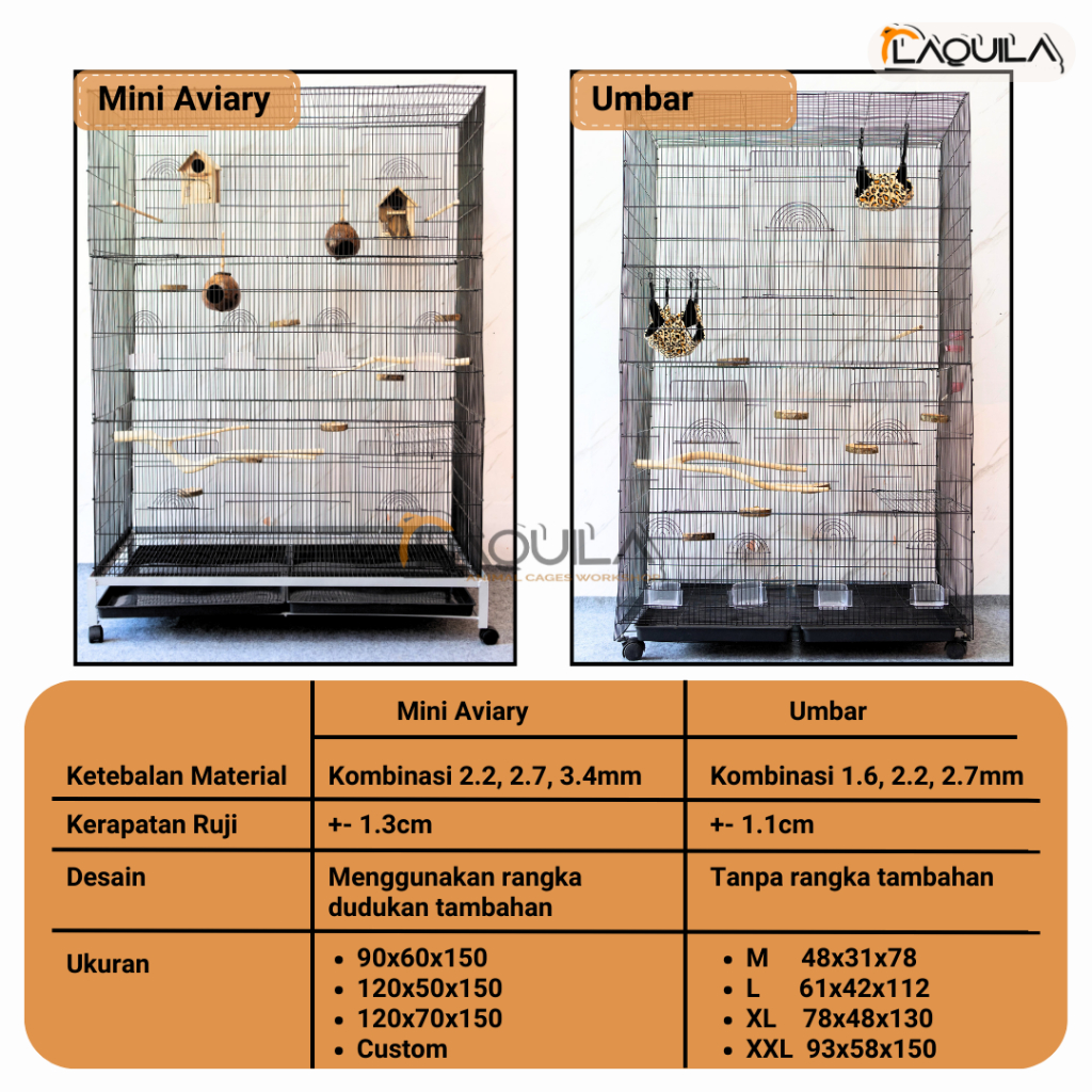 Kandang Galv Lipat Koloni Umbaran Mini Aviary All Size 3 tingkat
