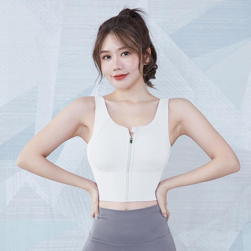 VITALFLOW Sport Bra Wanita Ritsleting Depan – Tahan Goncangan, Medium Support, Yoga & Fitness Musim Panas