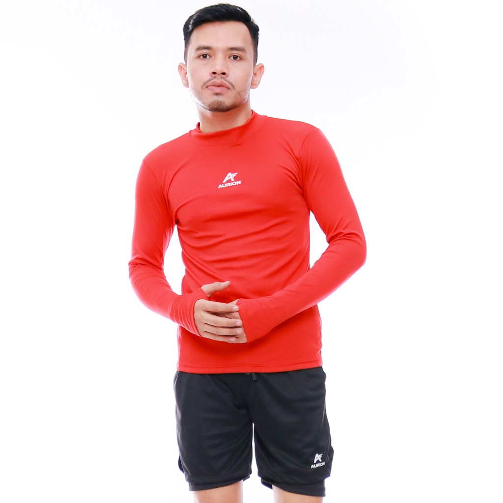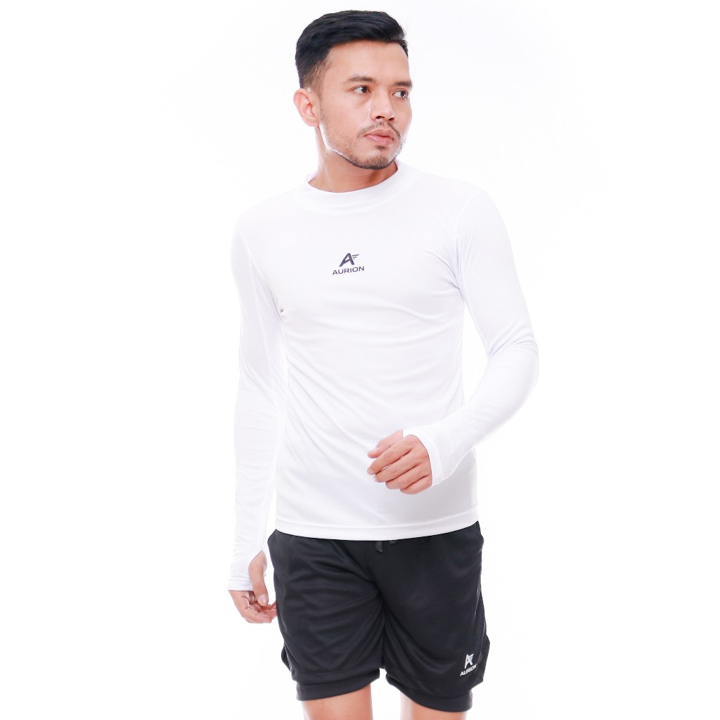 AURION Baselayer Lengan Panjang Manset Pria Atasan Olahraga Sepakbola Futsal Lari Gym