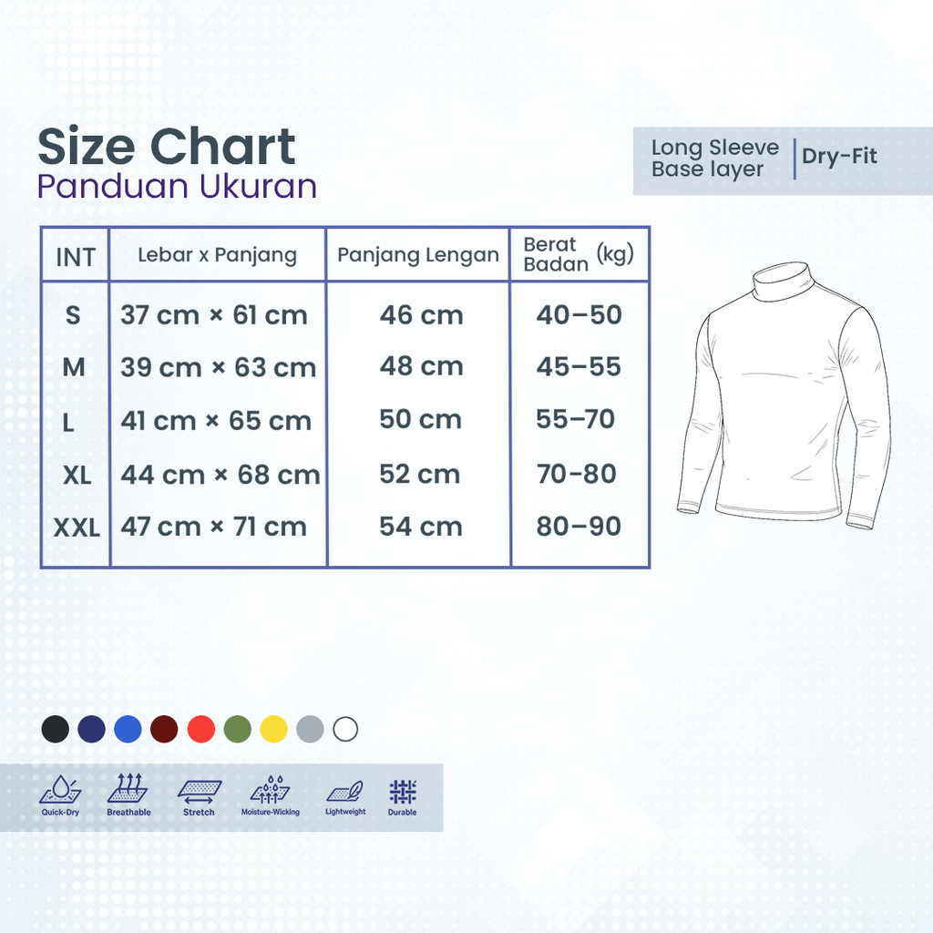 Baselayer Manset Lengan Panjang Adem, Baju Fitness Running Outdoor Pria Wanita Nyaman