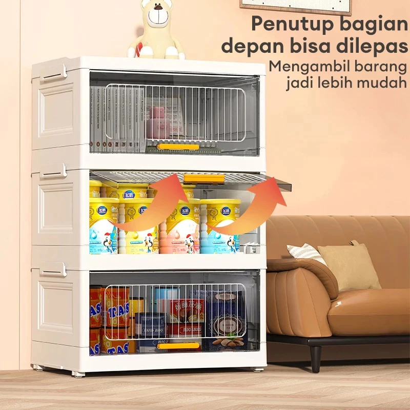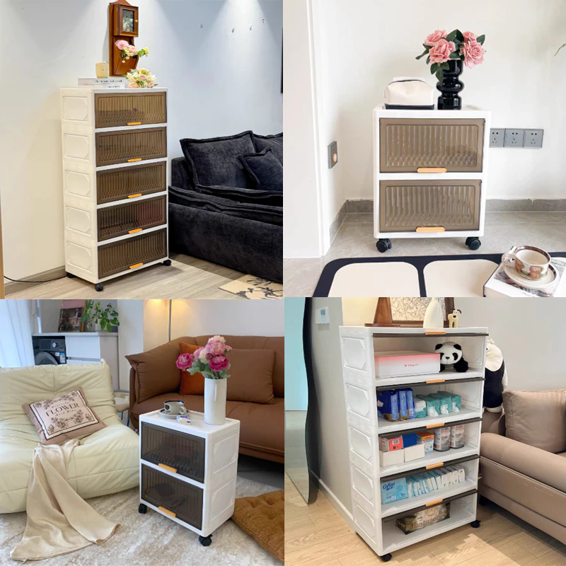 Kabinet Flip Lemari Pakaian Plastik Lemari lipat Lemari Plastik Pintu Lipat multi-lapis lemari loker dapat dilepas pintu geser Rak Kabinet