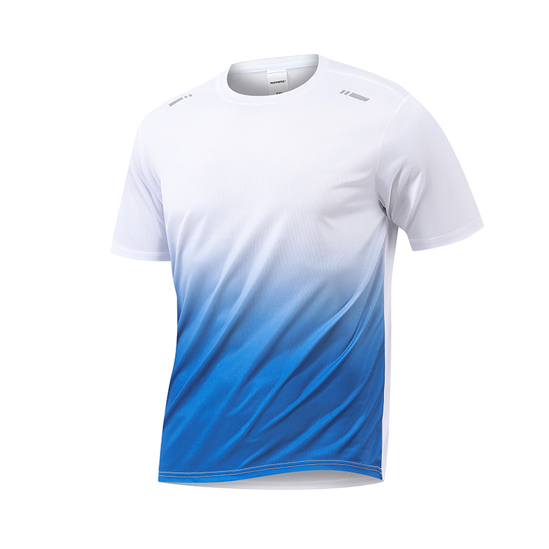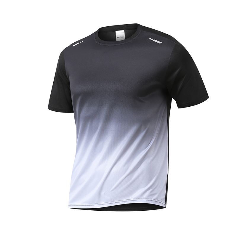 KAMB Kaos Olahraga Pria Gradien Hitam Putih Quick Dry Pernapasan Tinggi Elastis Tinggi Atasan Gym Pria Nyaman