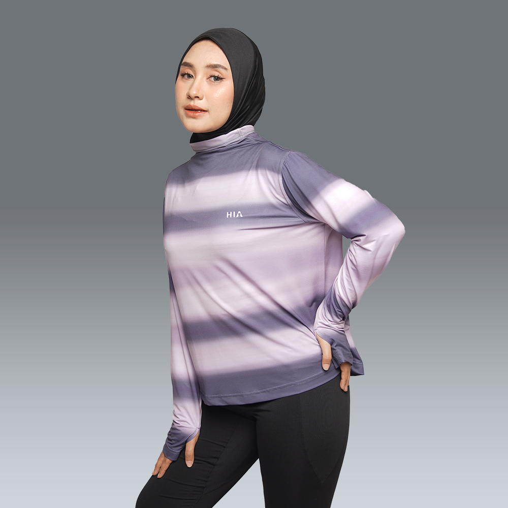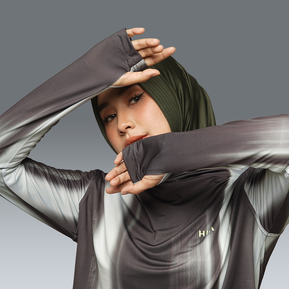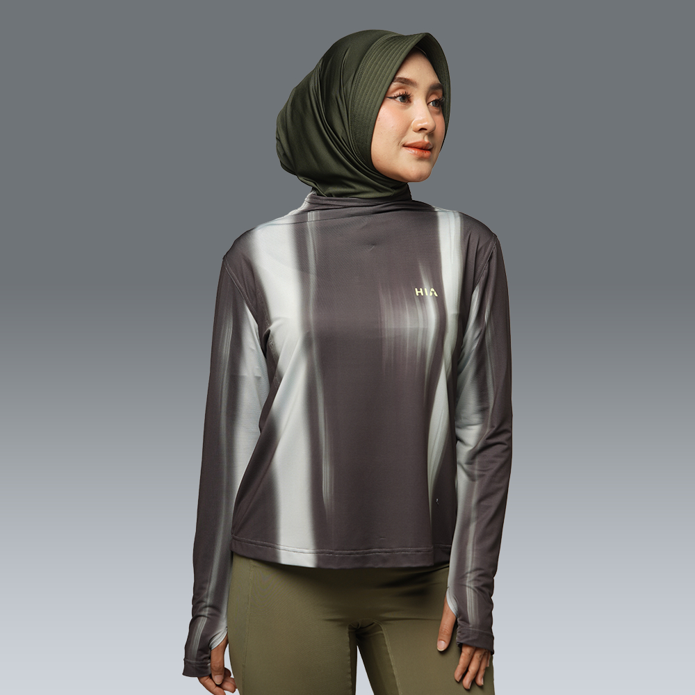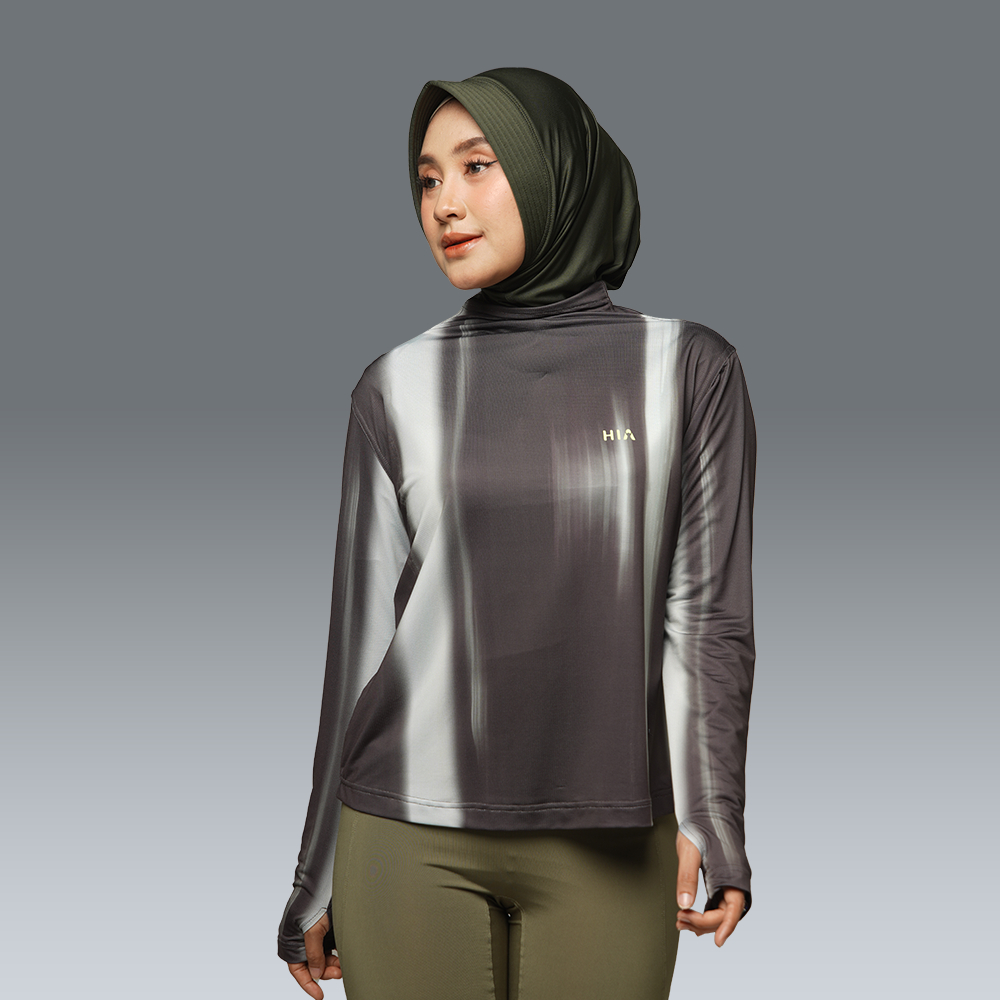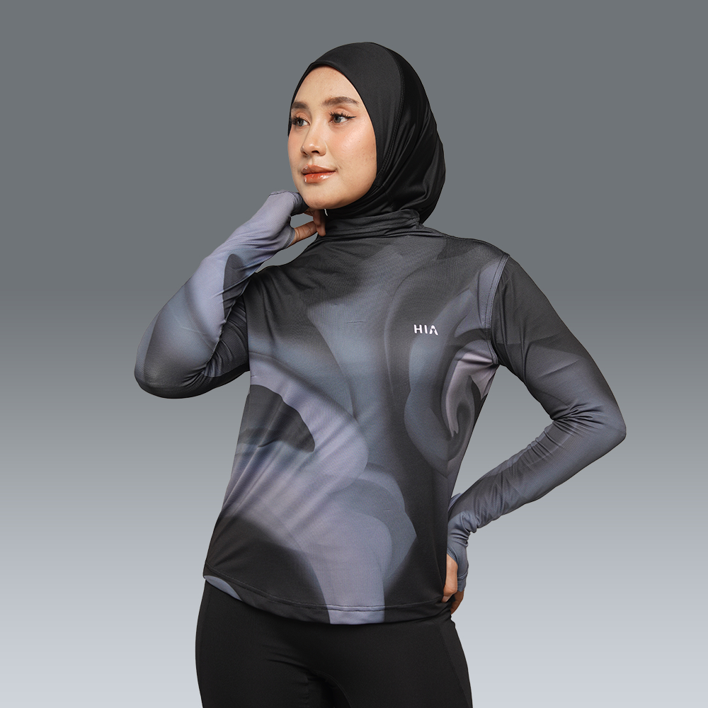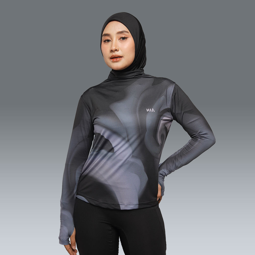 HIA Everywear Bhava Printed Baju Olahraga Wanita Running Gym Padel Lari Slim Fit Long Sleeve Bahan Dry Fit Hecktive Fabric