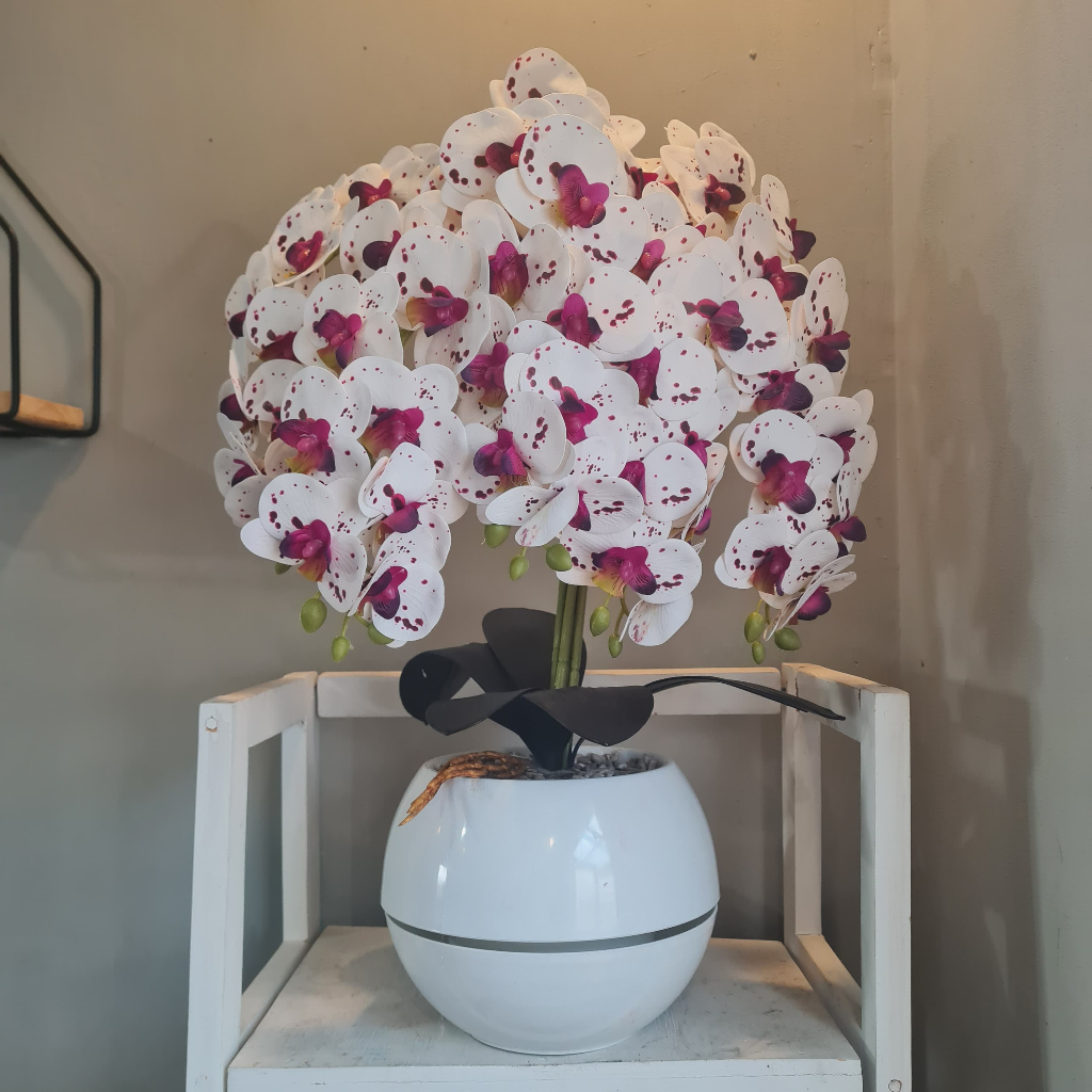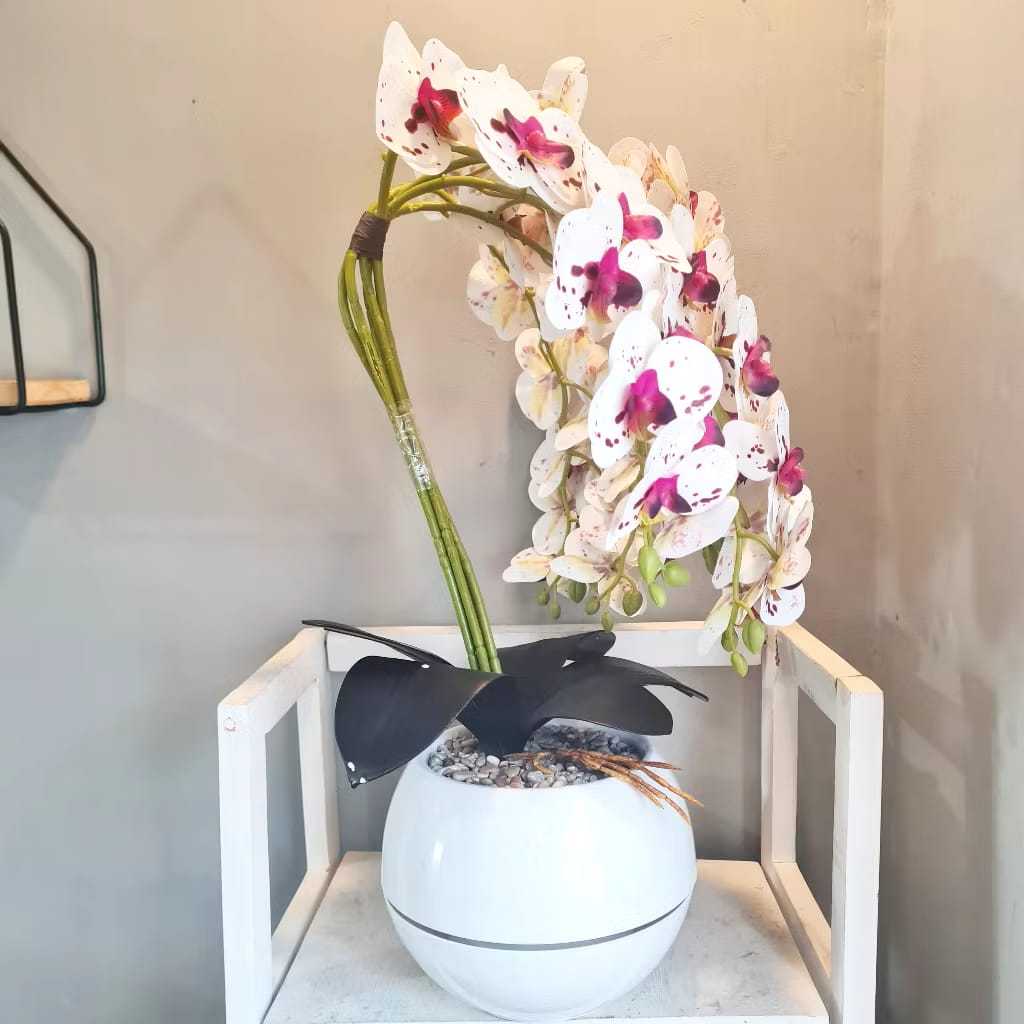 Dekorasi Tanaman Bunga Anggrek Latex Artificial VAS BOLA cabang 5 Bunga Jumbo