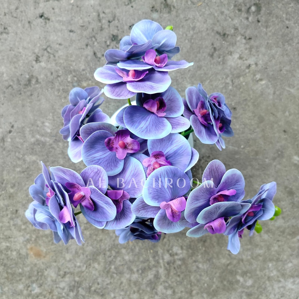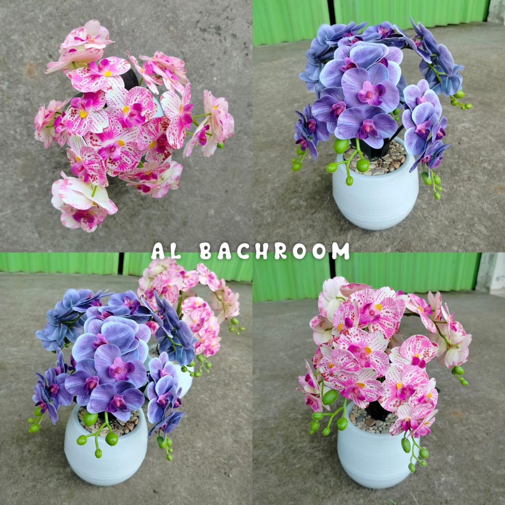 1 PAKET RB6058 BUNGA ANGGREK LATEX 6 CABANG DAN VAS VIENNA BUNGA PLASTIK ARTIFICIAL DEKORASI RUMAH CAFE