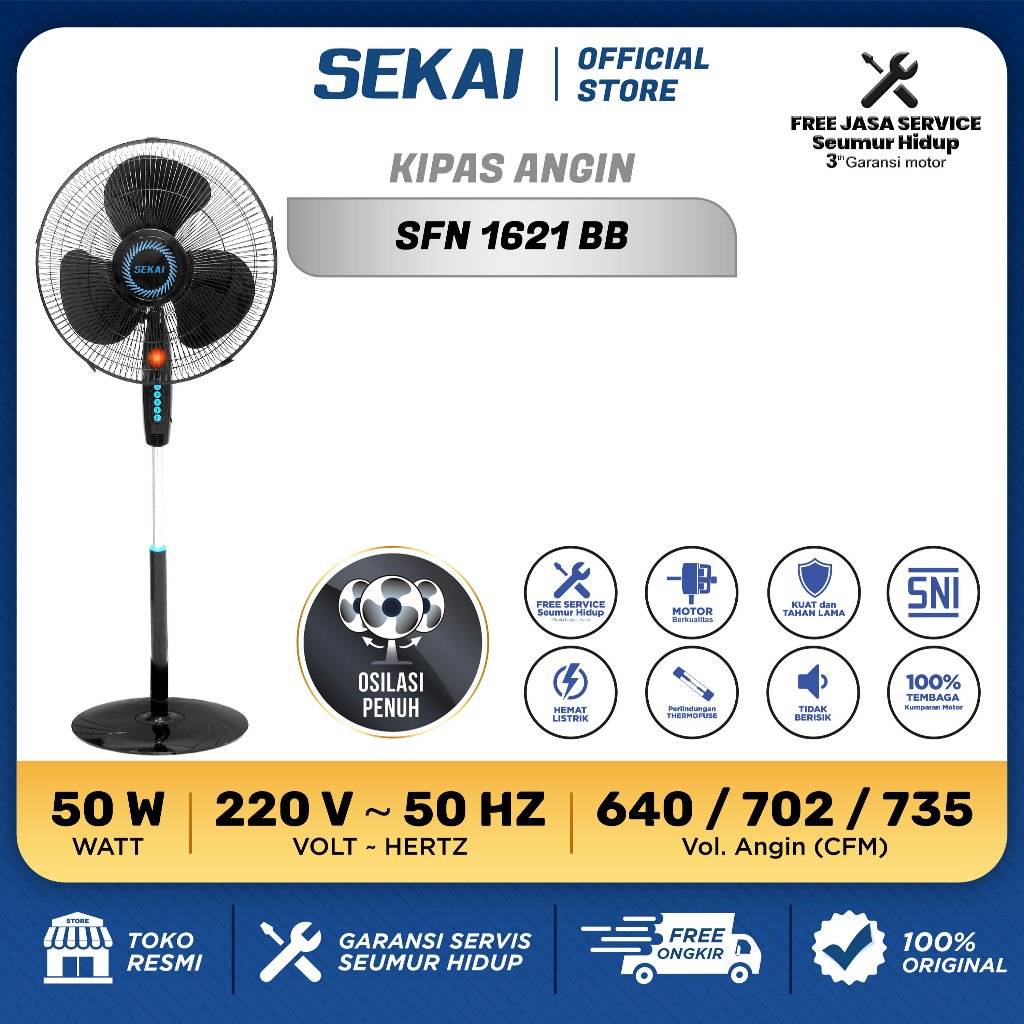 SEKAI Kipas Angin Berdiri / Stand Fan 16 Inch - SFN 1621 Kipas angin dinding cosmos kipas angin kipas angin duduk miyako