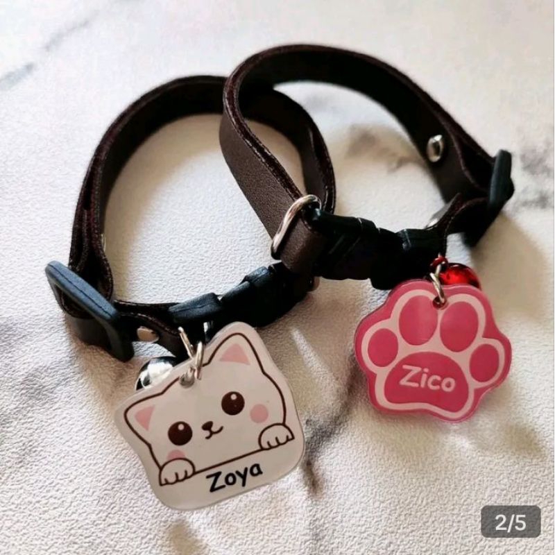 kalung kucing bisa custom nama liontin mengkilat waterproof dan tahan lama