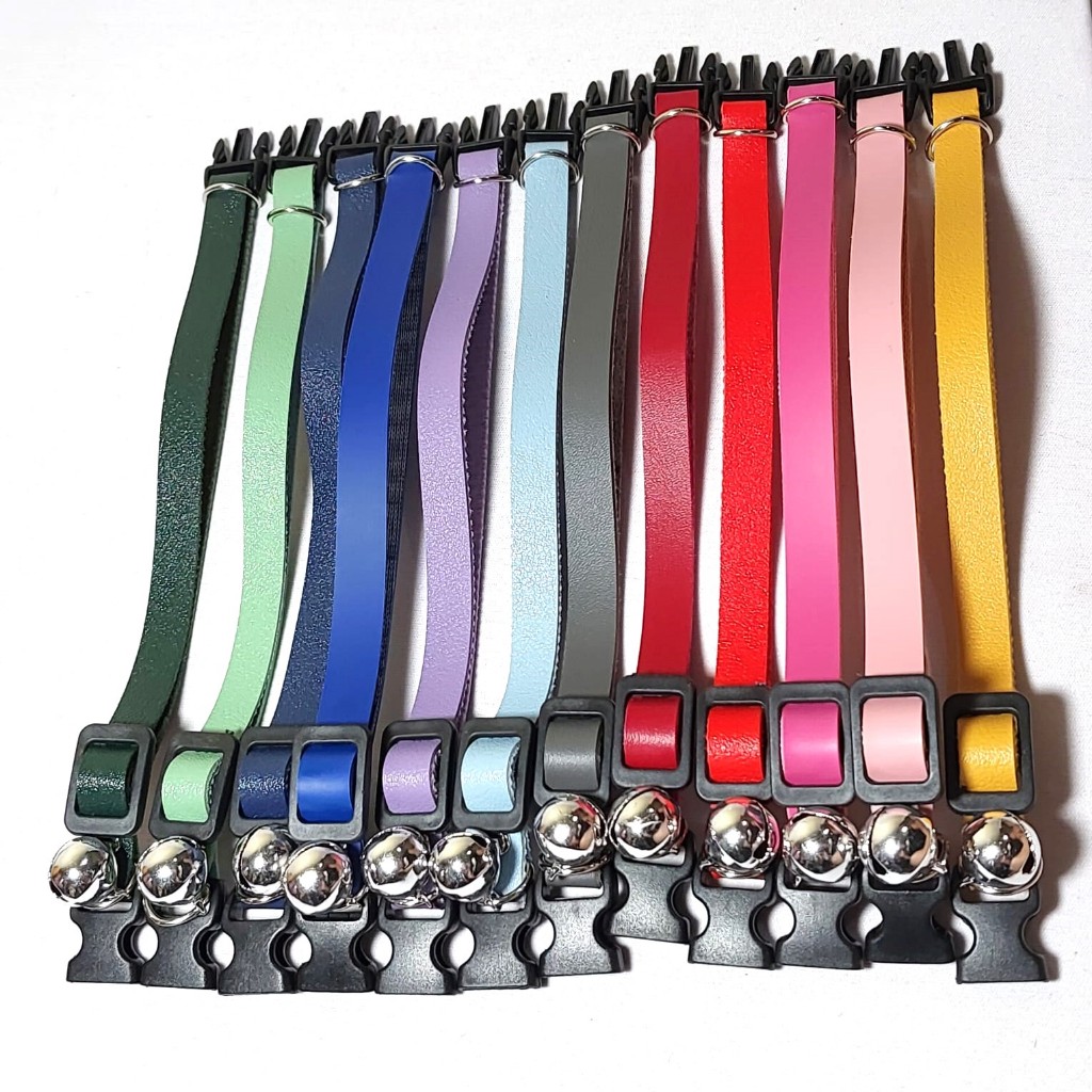 Kalung Kucing Kulit Sintetis Warna Warni Liontin Akrilik Bening Custom Nama
