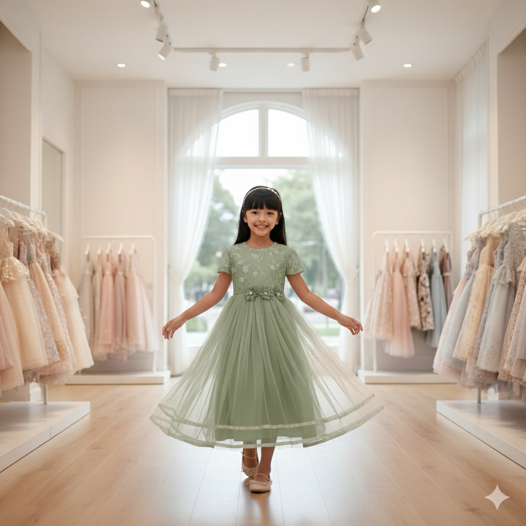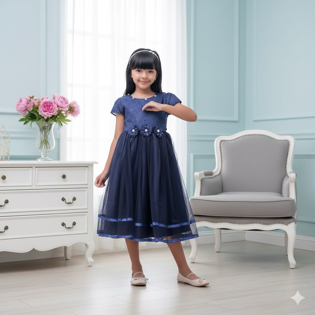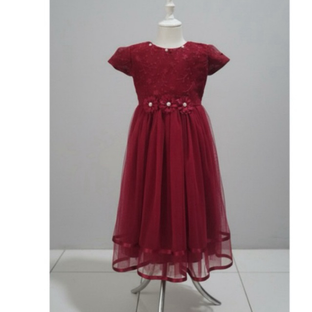 DRESS BAJU PESTA ANAK PEREMPUAN TILLE BRUKAT TANGAN PENDEK BAJU GAUN ULANG TAHUN