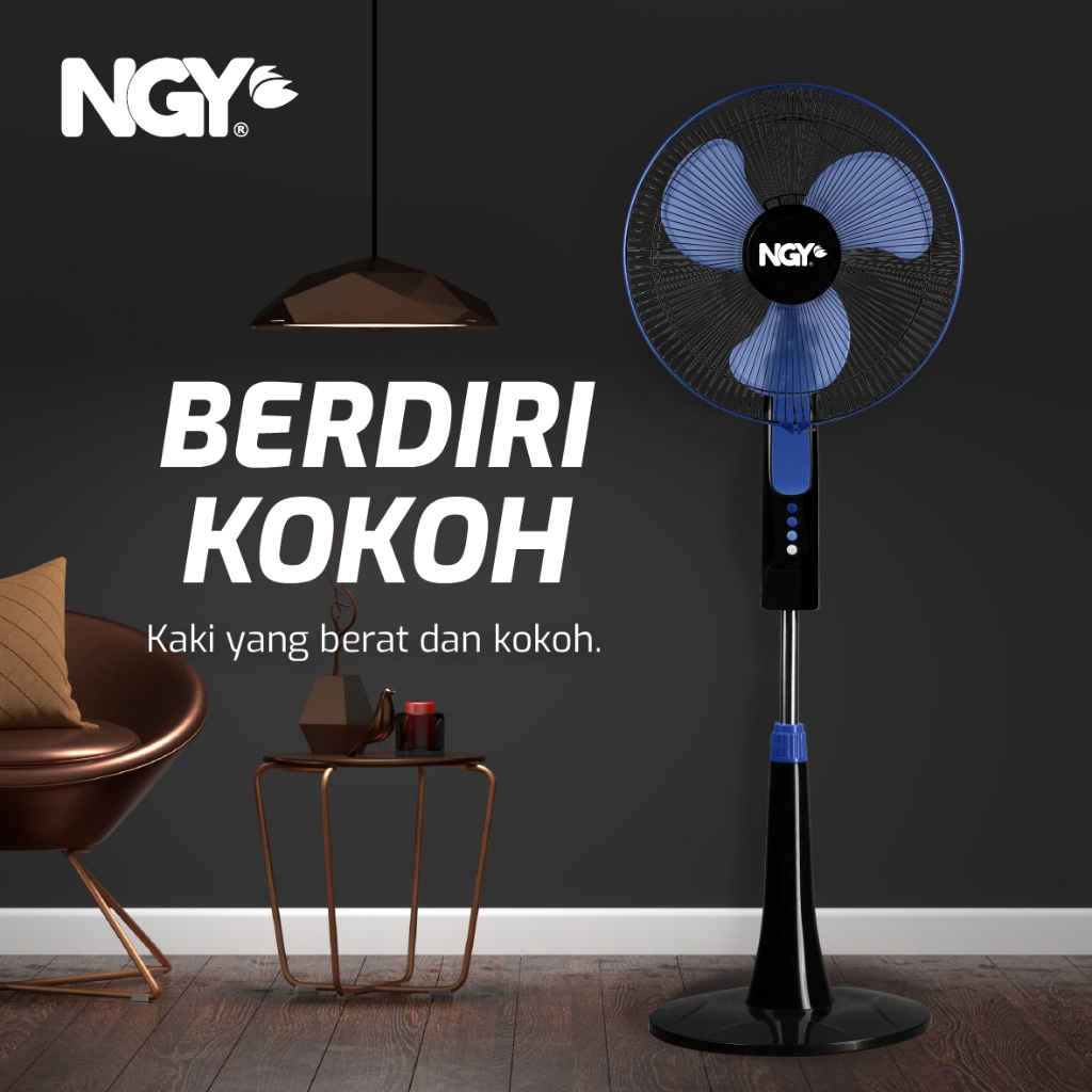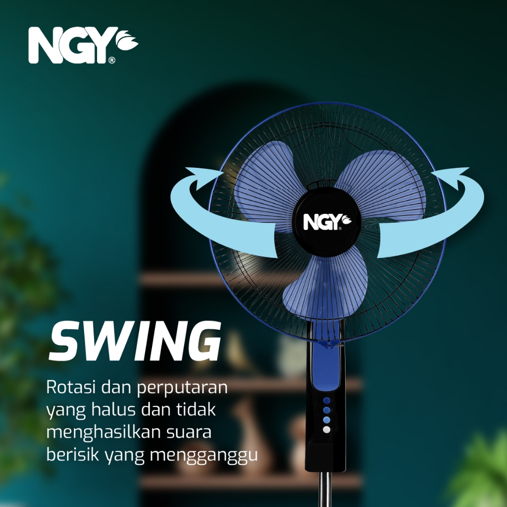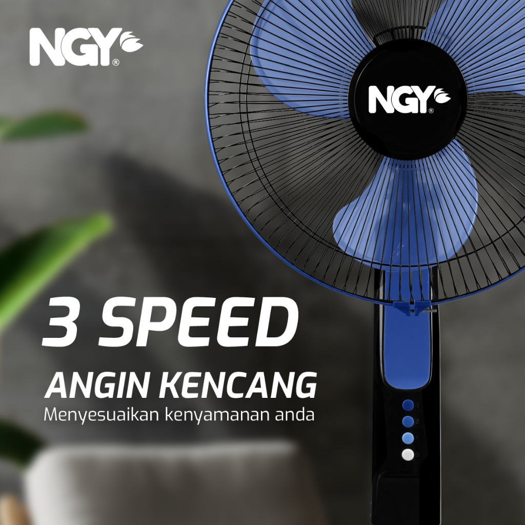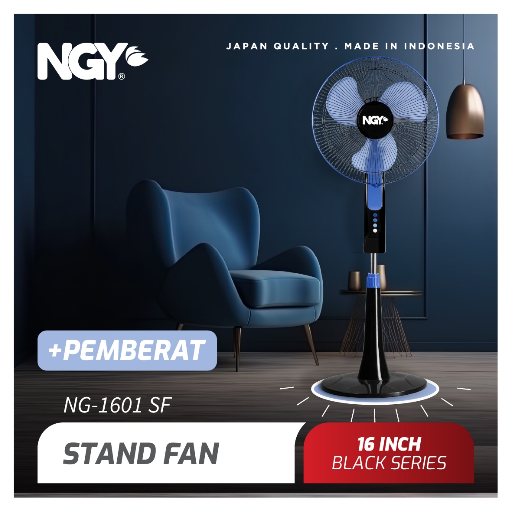NGY NG-16SFB Kipas Angin Berdiri / Stand Fan 16 inch Hitam Glossy kipas angin miyako kipas angin cosmos portable + remot