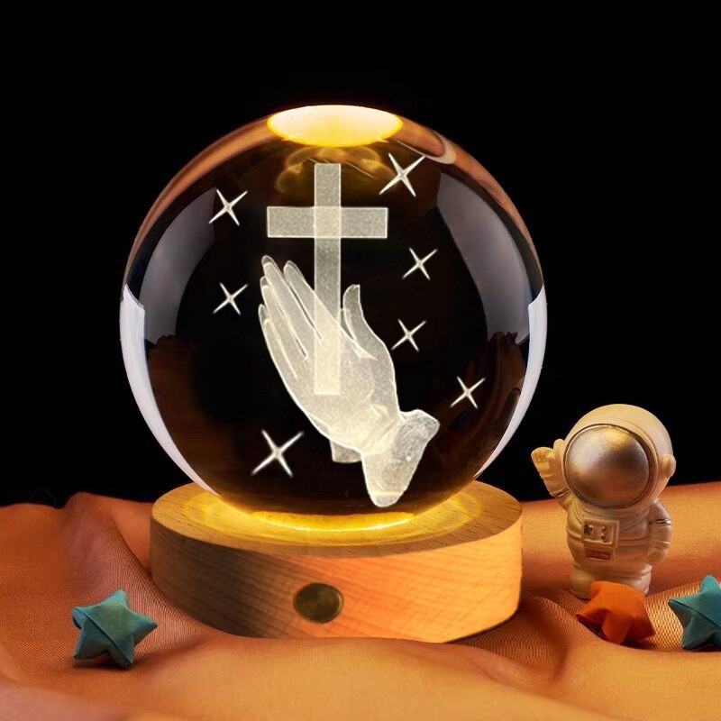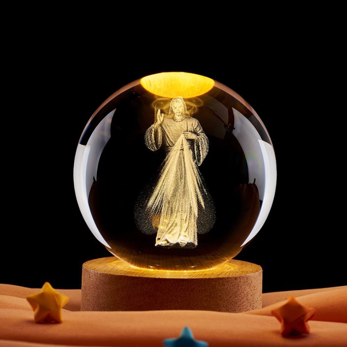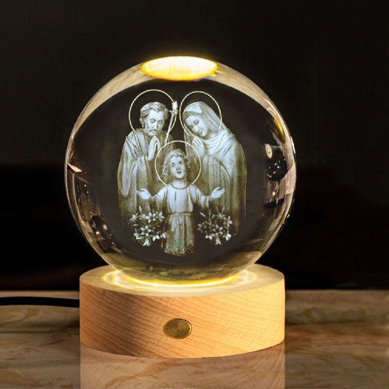 Lampu Tidur Salib Bunda Maria Tuhan Yesus Keluarga Kudus / Bola Kristal Yesus / Bola Kristal Salib Bercahaya / Souvenir Acara Awam Gereja / Hadiah Ulang Tahun / Dekorasi Desktop Kantor / Glow Lamp