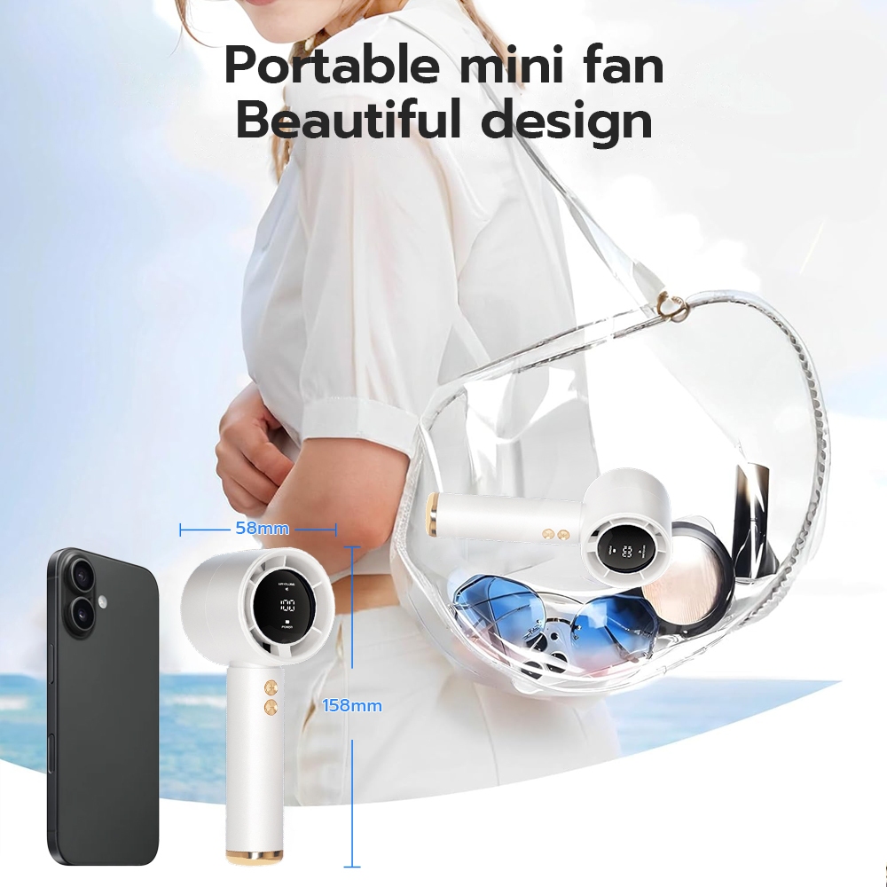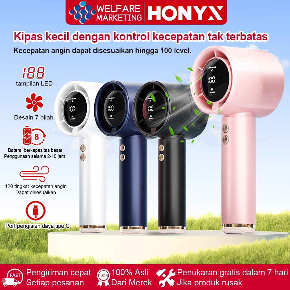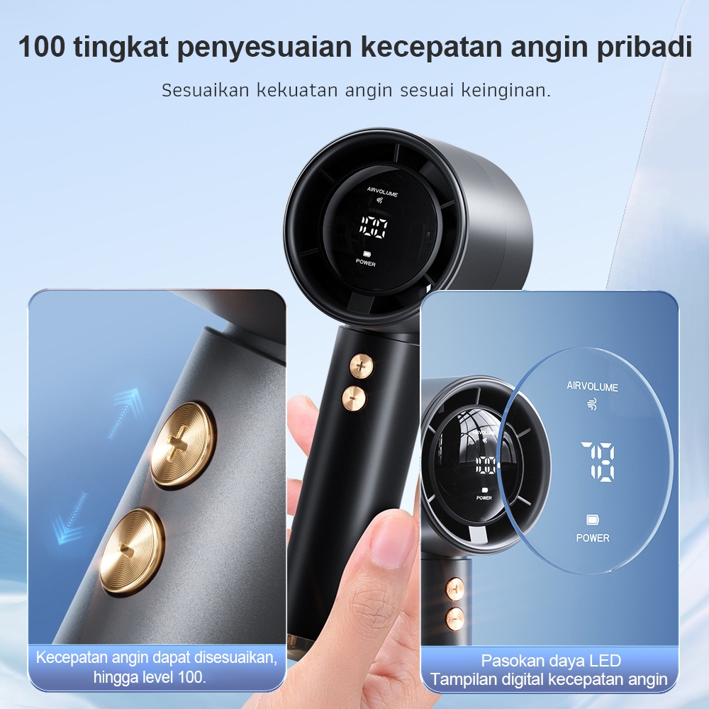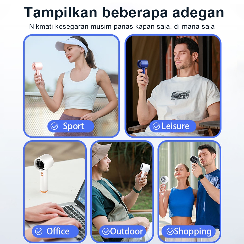 Kipas turbo miniKipas portabel isi ulangKipas genggam 100 tingkat kecepatan angin penyesuaian layar led