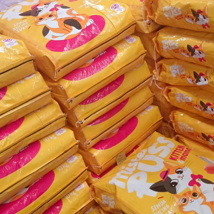 ( 10 PCS ) Makanan Kucing Mister Puss Kitten & Mama Salmon & Tuna Kkuningan mengkilapan 500G Dry Food