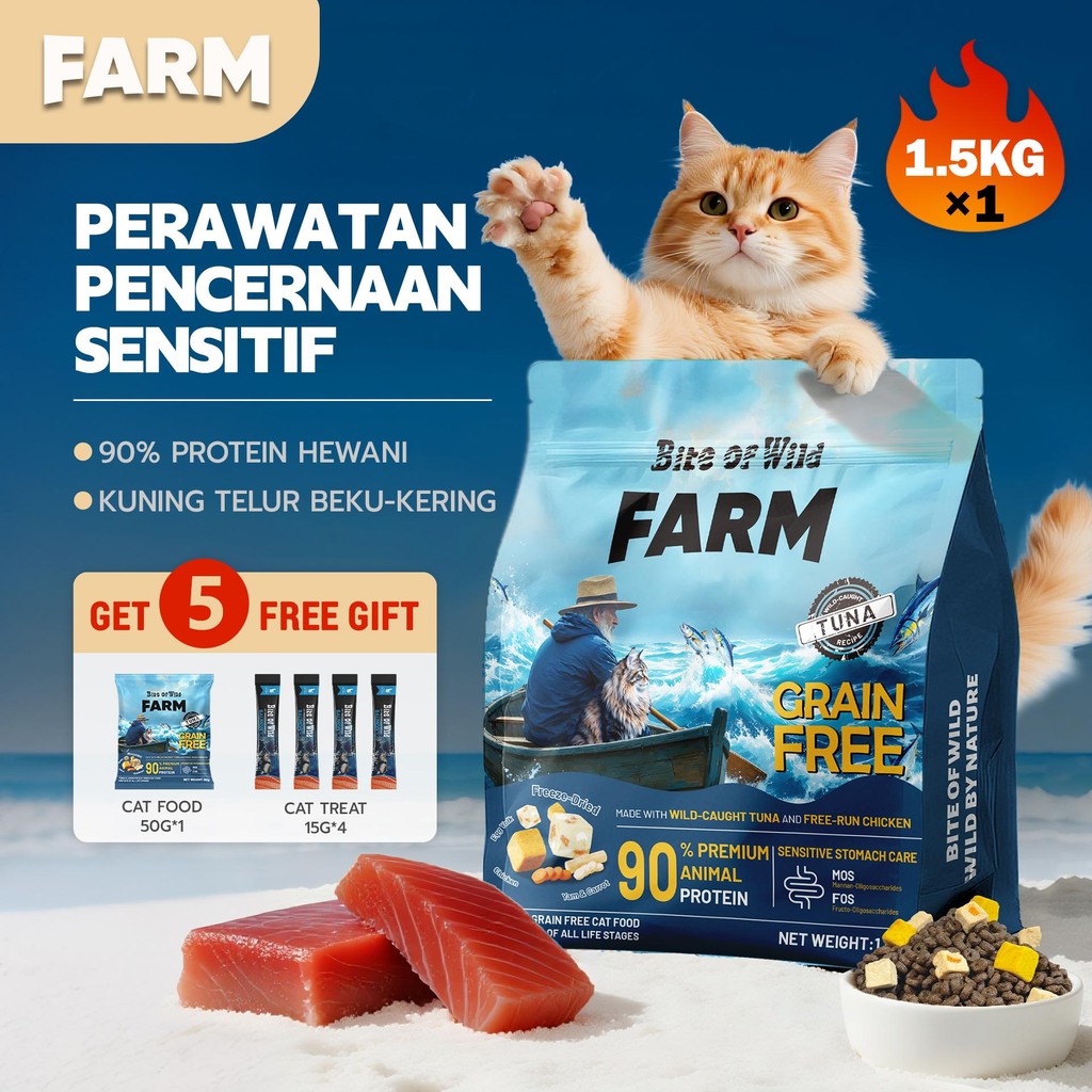 FARM Premium Cat Food 1.5kg Salmon Tuna - High Protein Sensitive Skin
