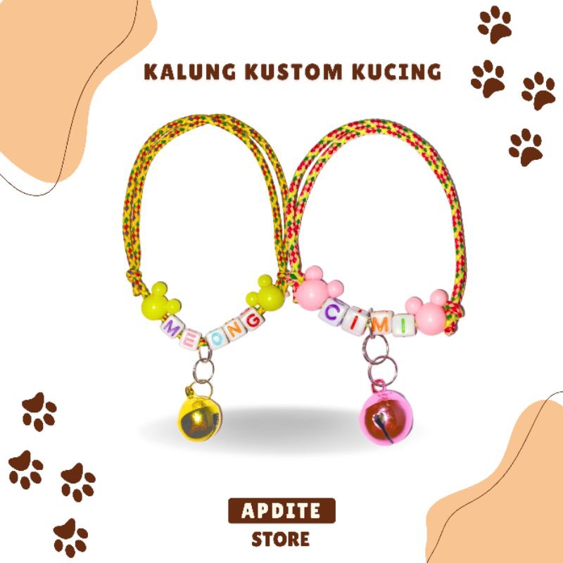 Apdite Kalung Kucing Kustom Nama + Lonceng 14 mm