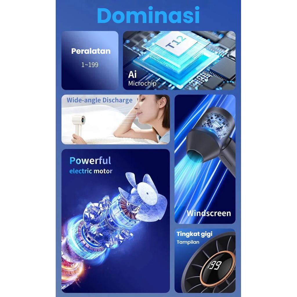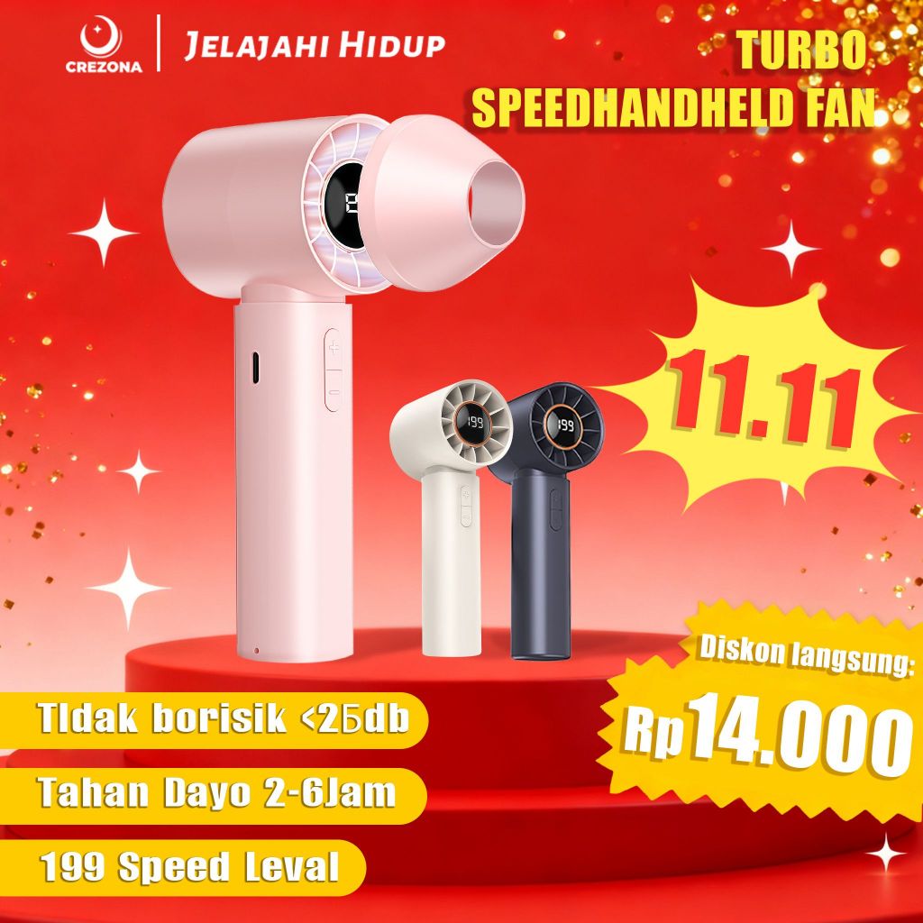 Kipas Genggam Portable USB Nozzle | Turbo Mini Fan 199 Gigi | High-Speed Wind | Layer LED FB08