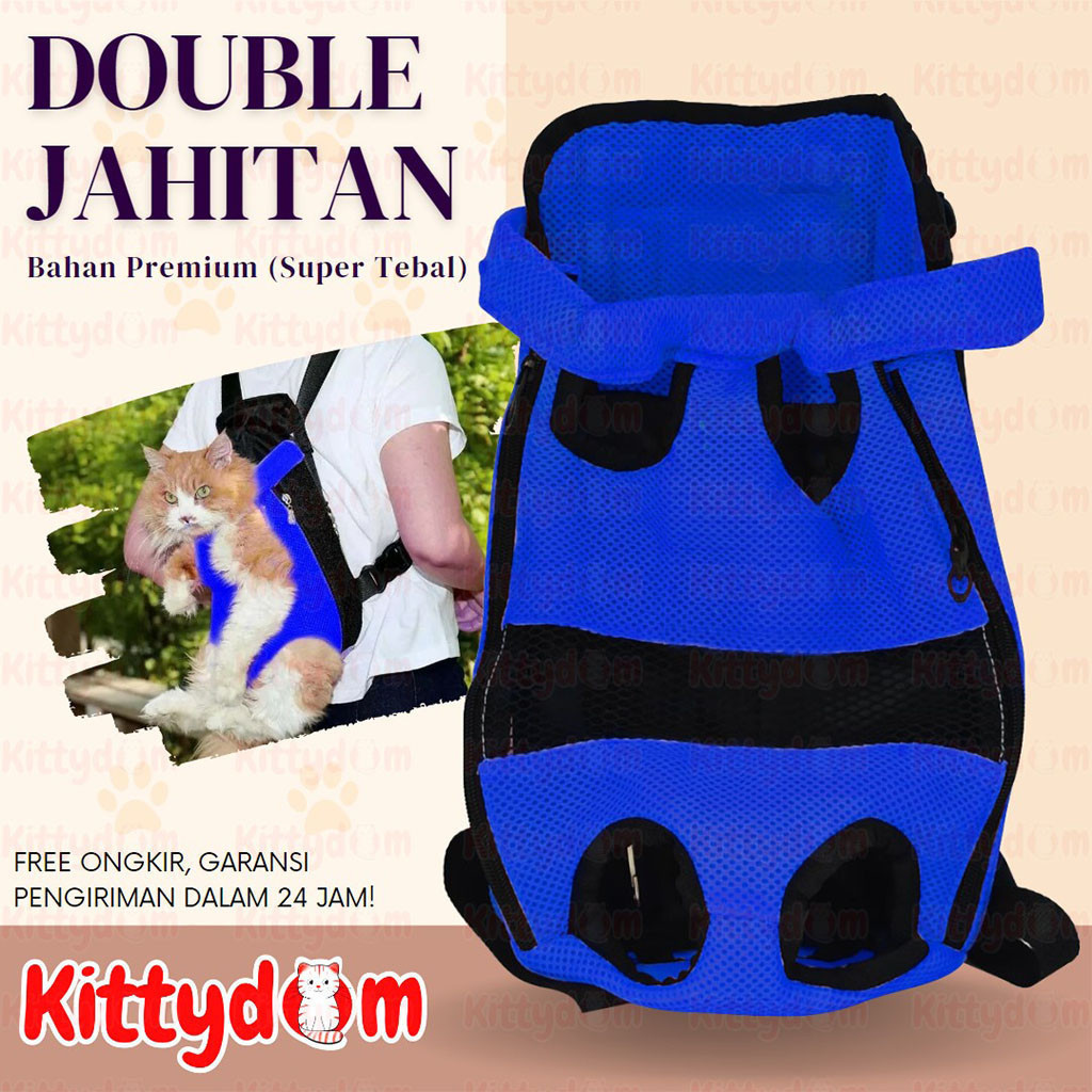 KITTYDOM Pet Carrier Tas Depan Gendong Ukuran 40 x 26 cm Tas Ransel Kucing Anjing Front Bag TSBLK