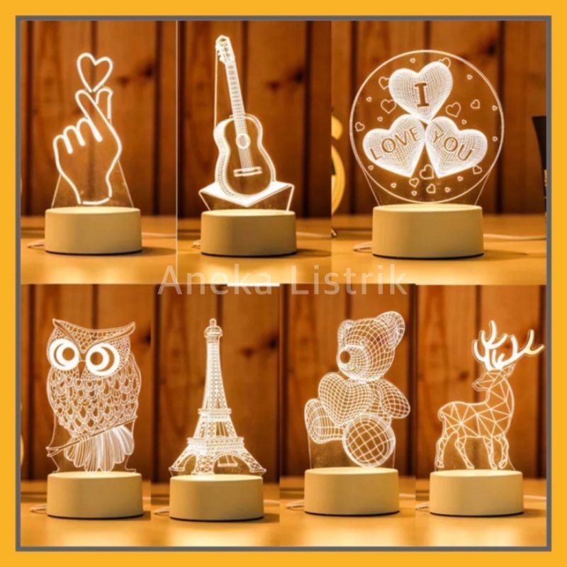 LAMPU HIAS LED 3D / LAMPU TIDUR HIAS DIMENSI 3 WARNA PUTIH KUNING WARMWHITE LAMPU 3D LED KACA TRANSPARAN HIASAN PAJANGAN TUMBLR KAMAR TIDUR AESTHETIC