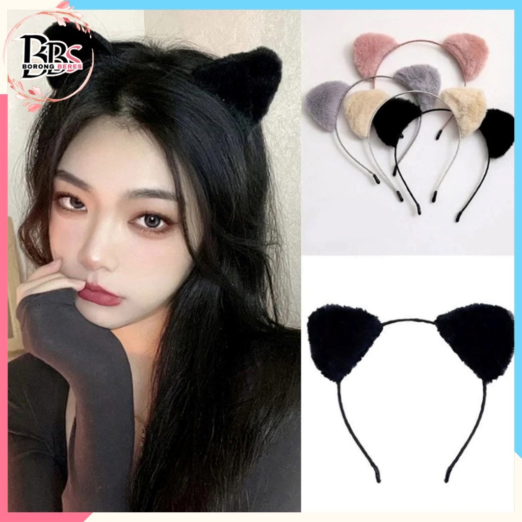 BORES Bando Telinga Kucing Model Bulu halus Lembut Bandana Wanita Korea Cosplay Cat Lucu Bondu Bulu Mouse Anak Dewasa