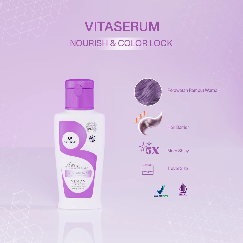 Combo 3 2in1 VENON Serum + Vitamin Rambut E , A , C Nourish & Color Lock 30ml / Serum Rambut / Rambut Berwarna