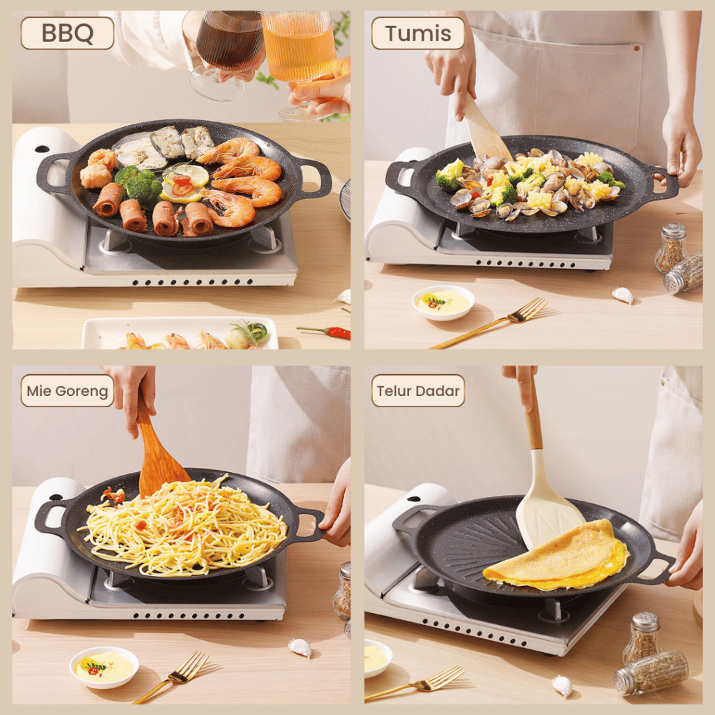 [Star] Terbaru Funkoo Grill Pan Batu Granit Premium Anti Lengket Untuk BBQ Steak Ikan Ayam Serbaguna 4 Ukuran